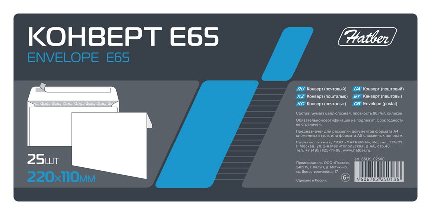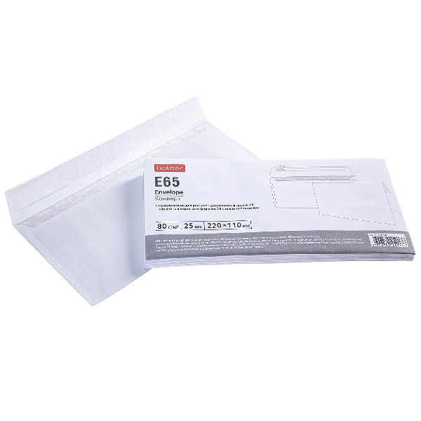 Конверт Е65 110*220 белый силиконовая лента б/окна (25шт)
