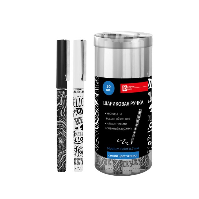 Ручка шариковая синяя Монохром 0,7мм ассорти принт