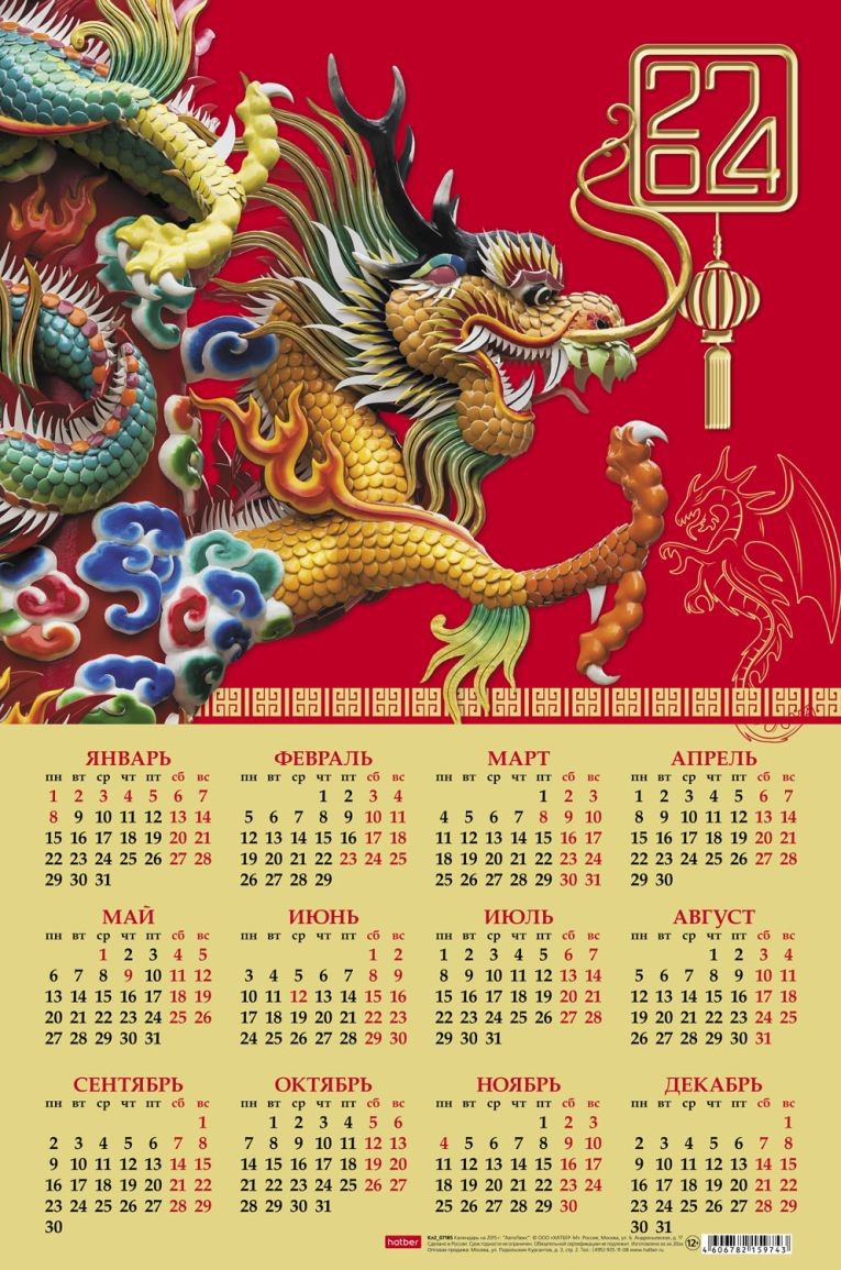 Календарь листовой 2024 Кл3_29750 Год китайского дракона
