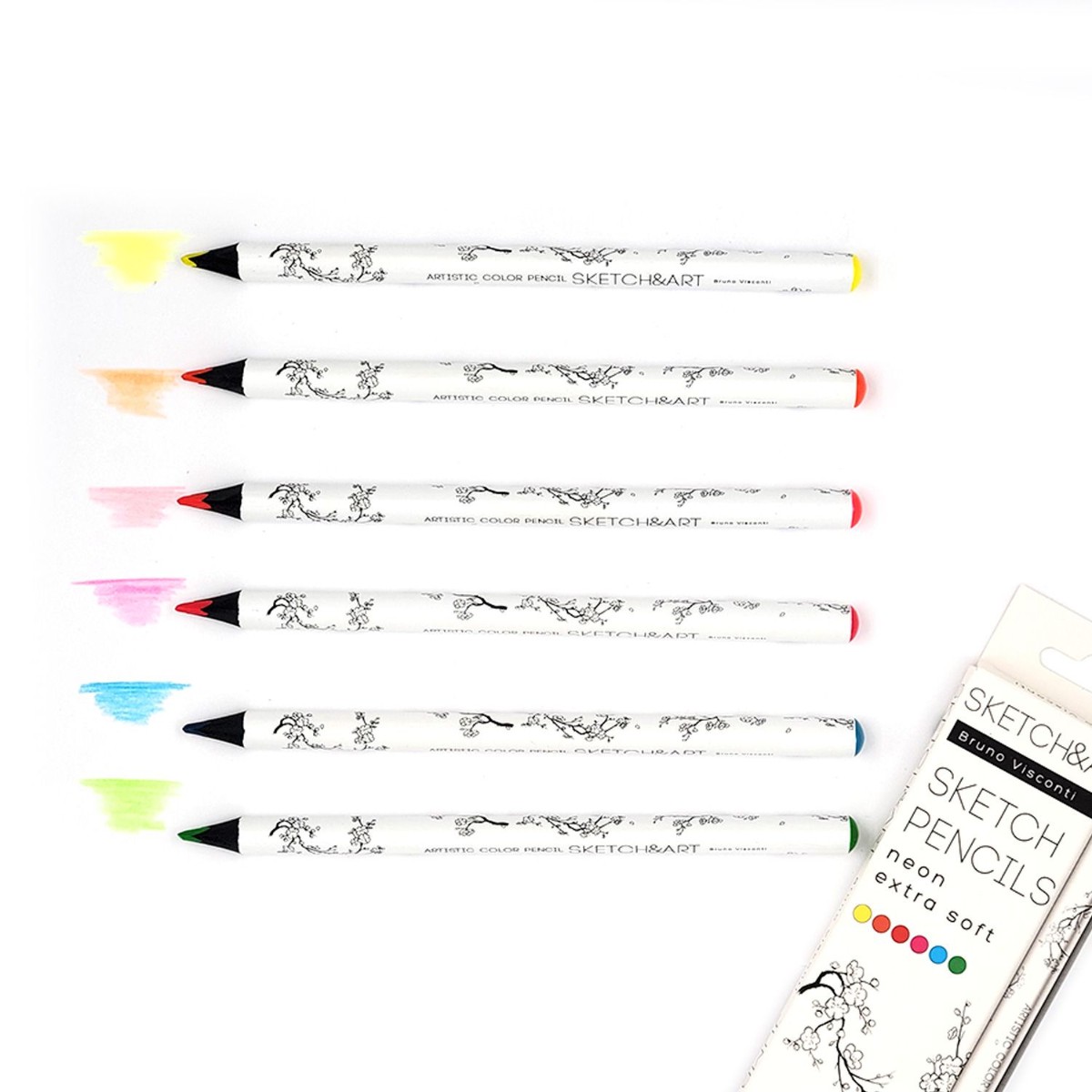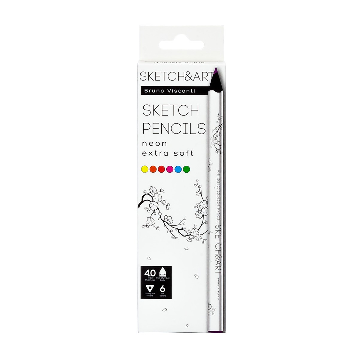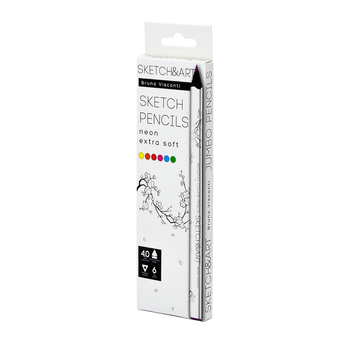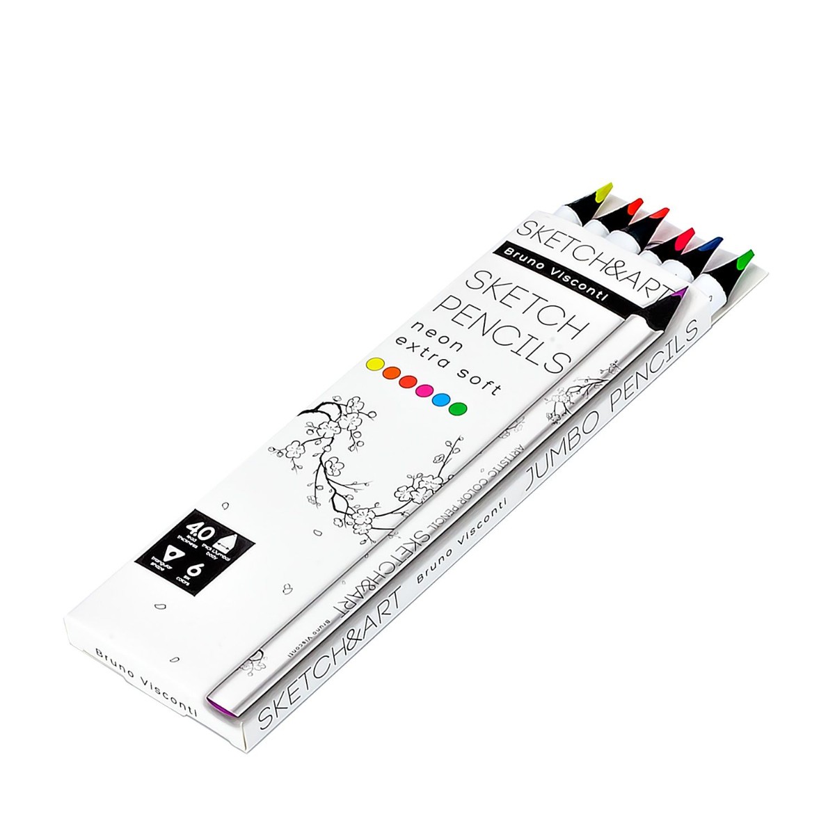 Карандаши цветные 6 цв скетч BV Sketch&Art утолщенные, 4мм, неоновые