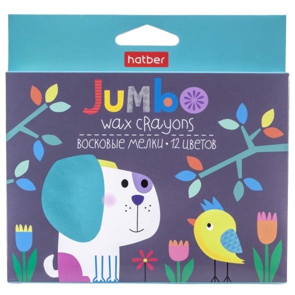 Мелки восковые 12цв Hatber Щенок круглый корпус диаметр 11мм JUMBO