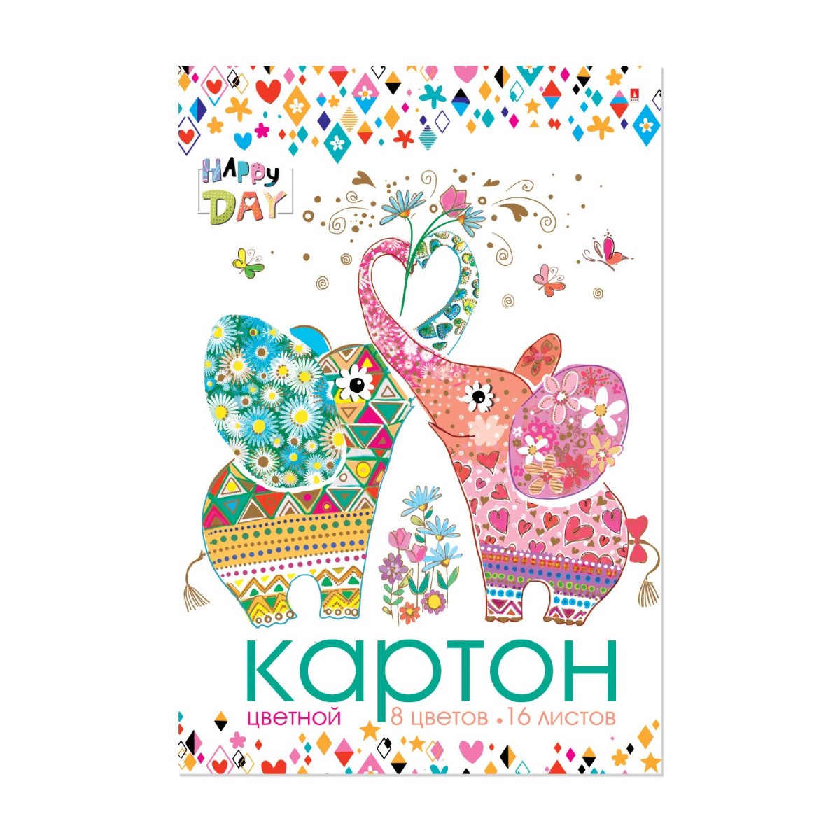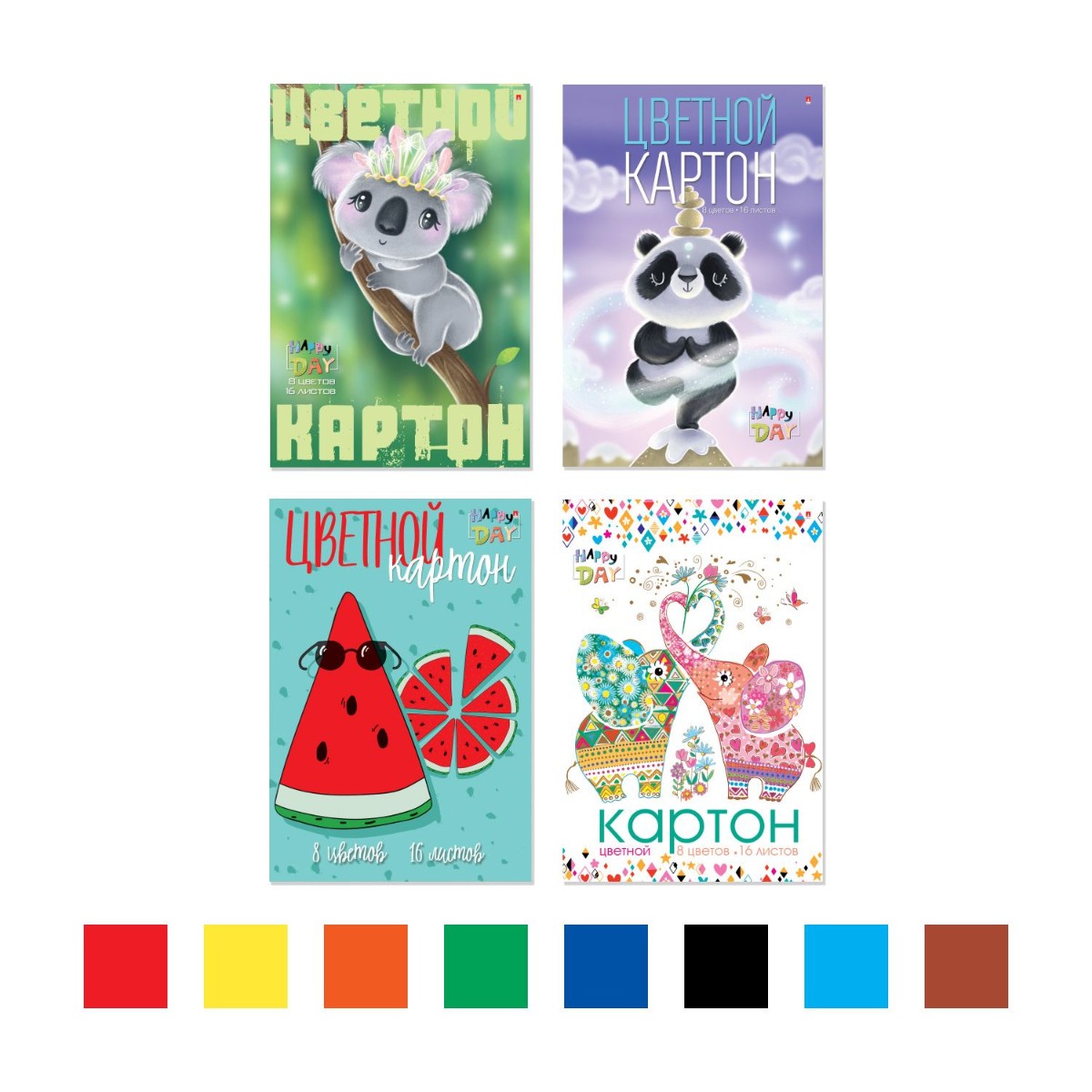 Картон цветной А4 16л 8цв мелов Мультики ассорти