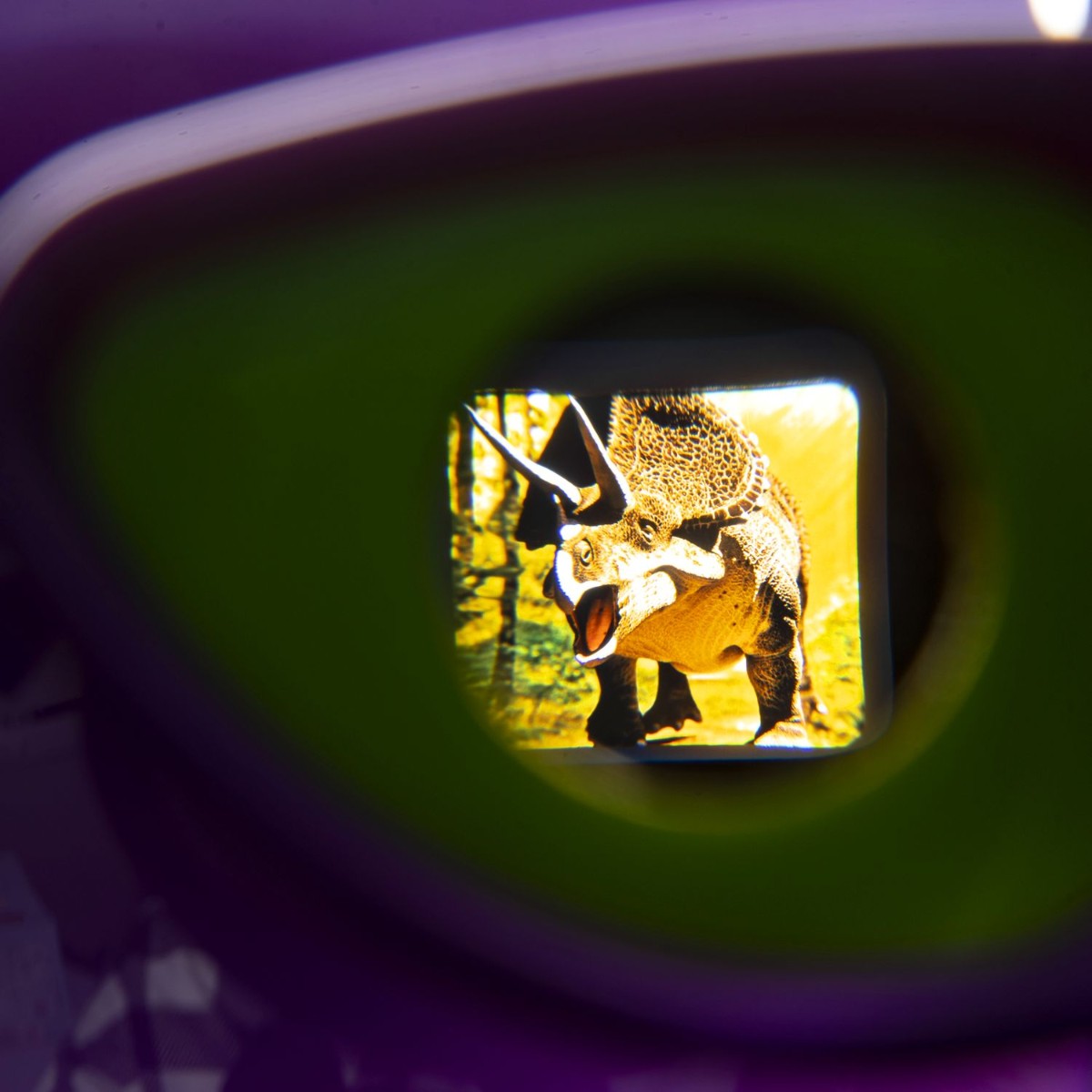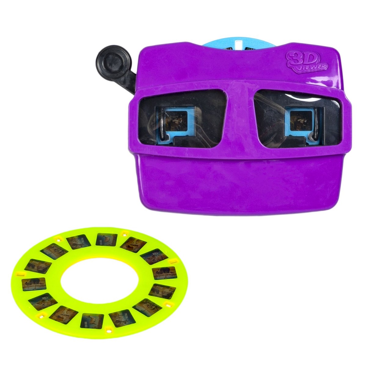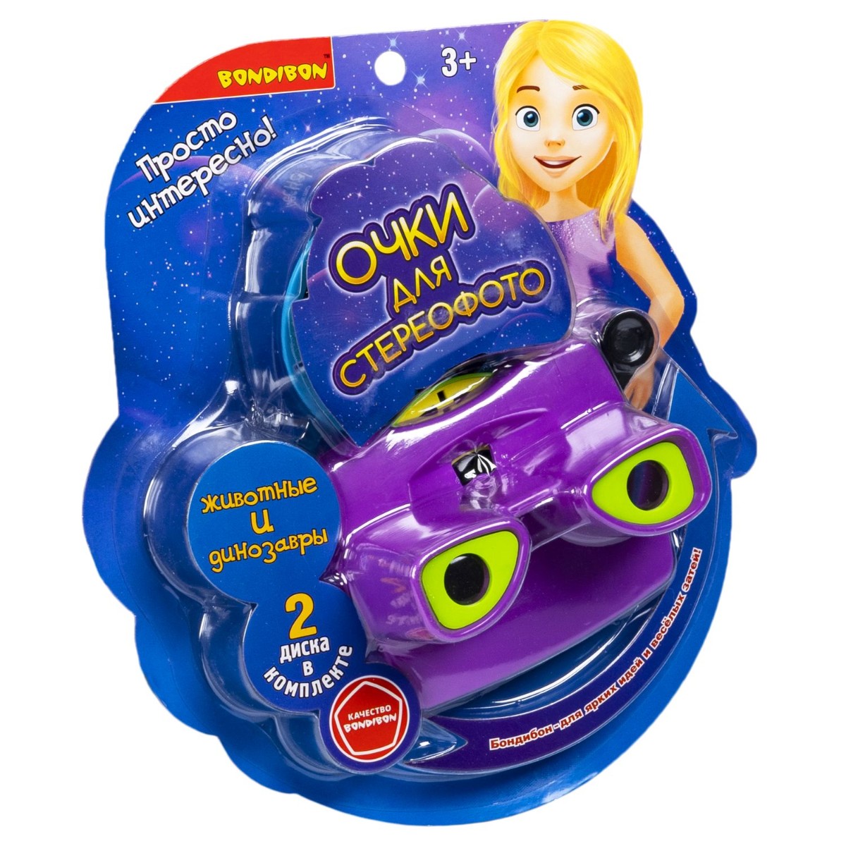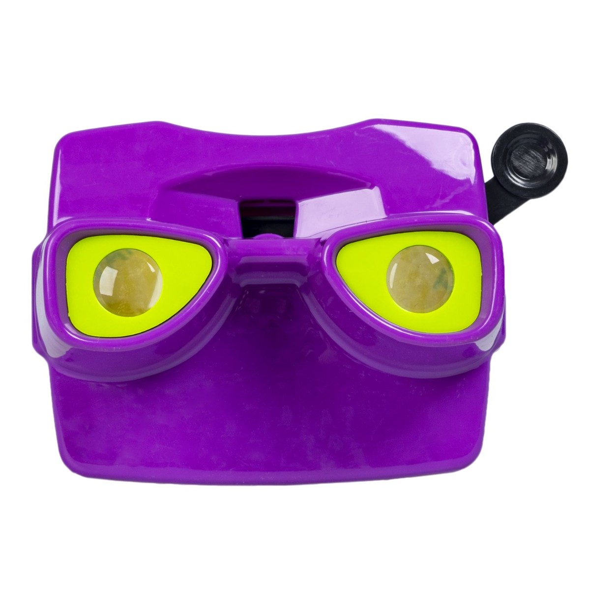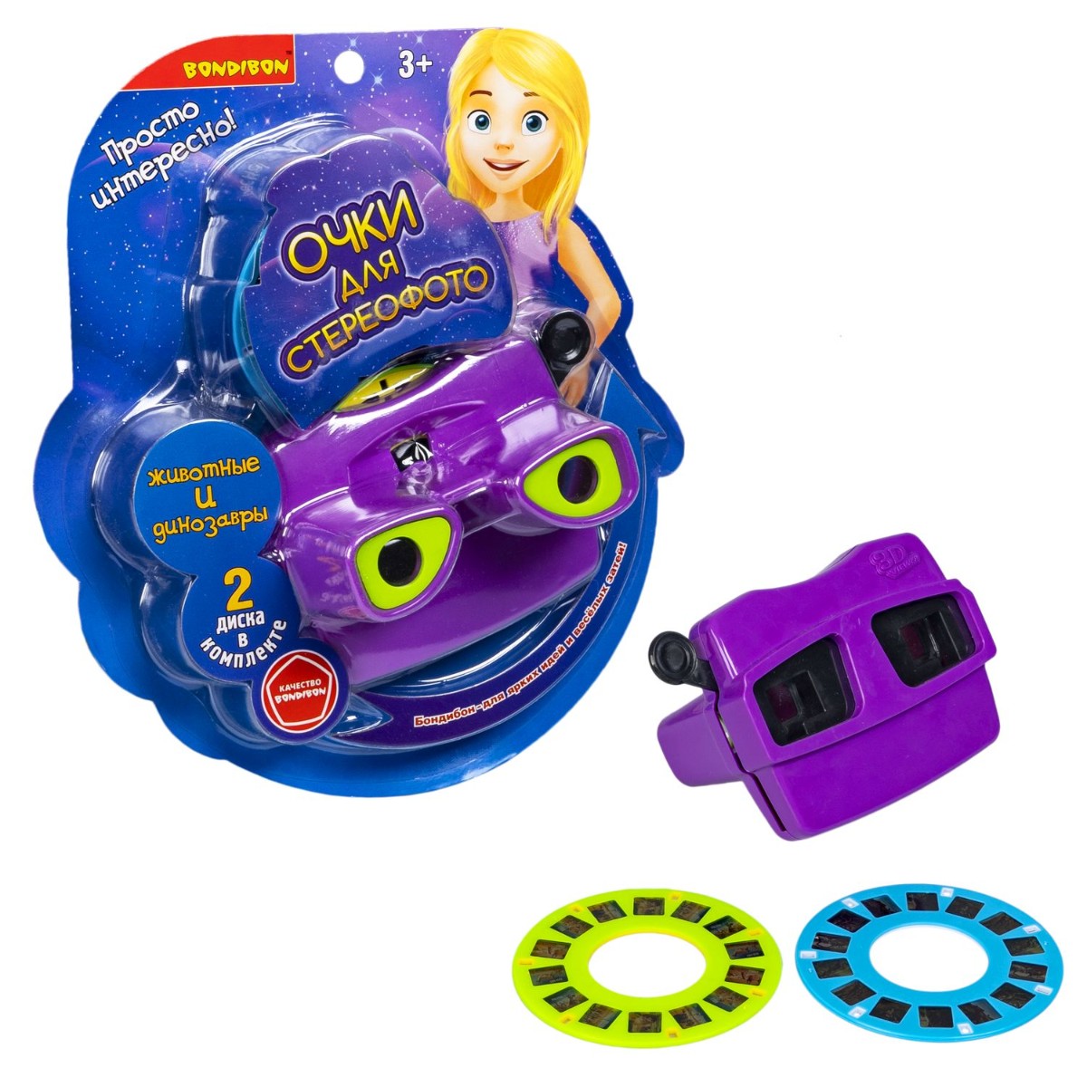 Очки 3D Животные и Динозавры квадратные фиолетовые (цветные cтереодиапозитивы 2 диска со слайдами)