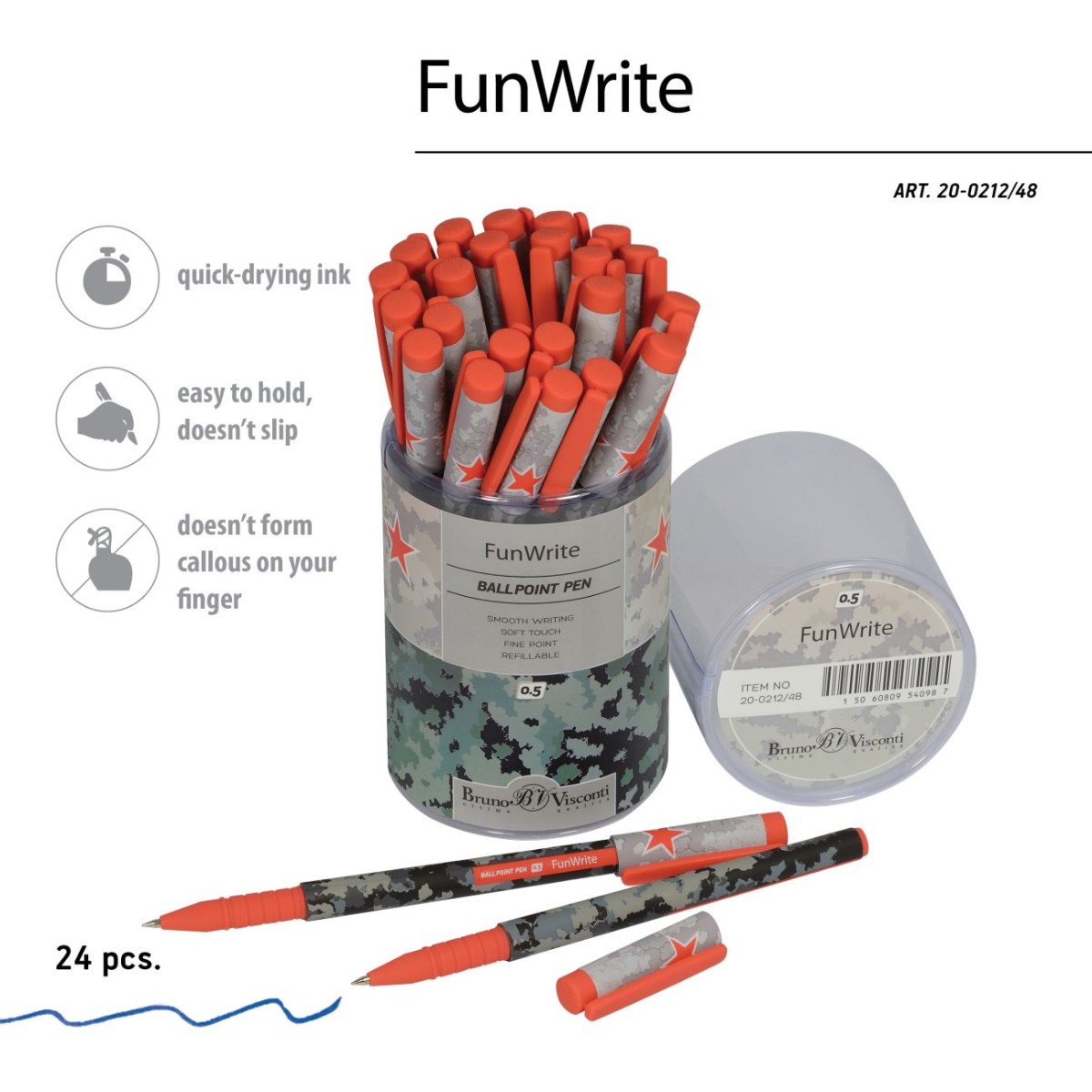 Ручка шариковая синяя BV FunWrite Military. Airforce 0,5мм принт