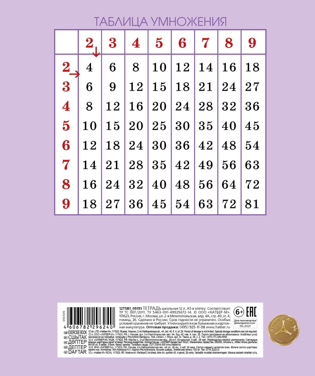 Тетрадь 12л клетка Однотонная. Пастель Сиреневая