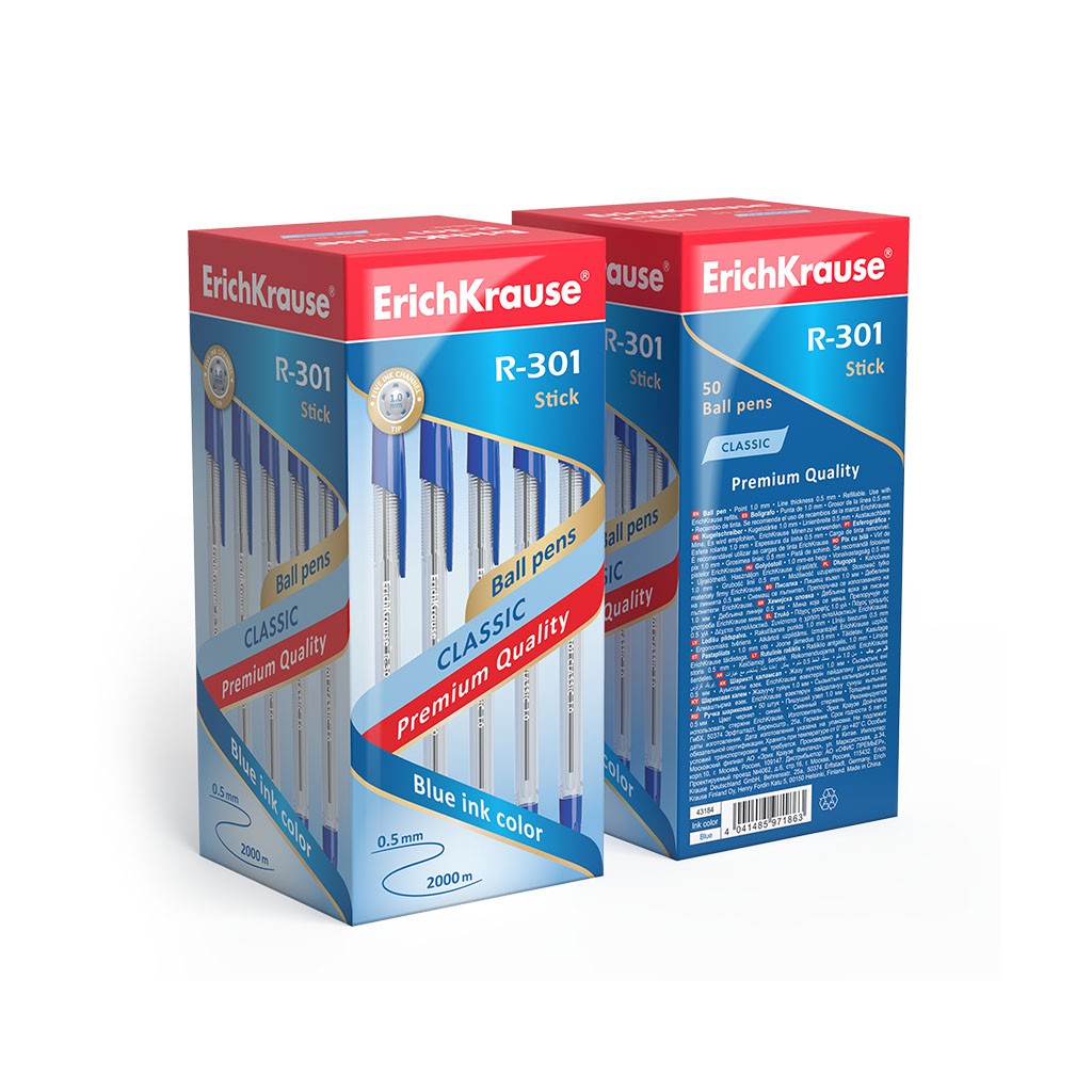Ручка шариковая синяя EK R-301 Classic Stick 1,0мм корпус прозр
