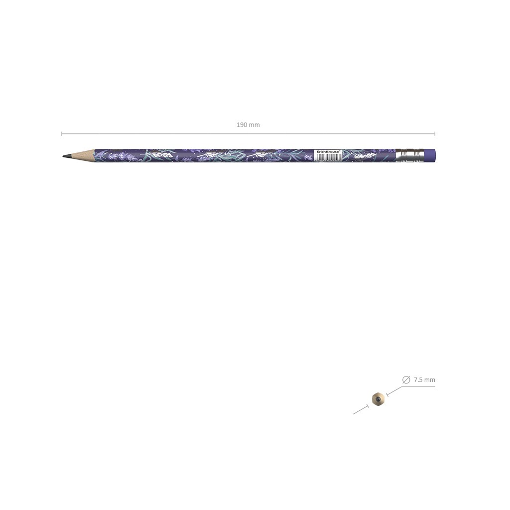 Карандаш ч/гр HB EK Lavender, трехгранный, с ластиком