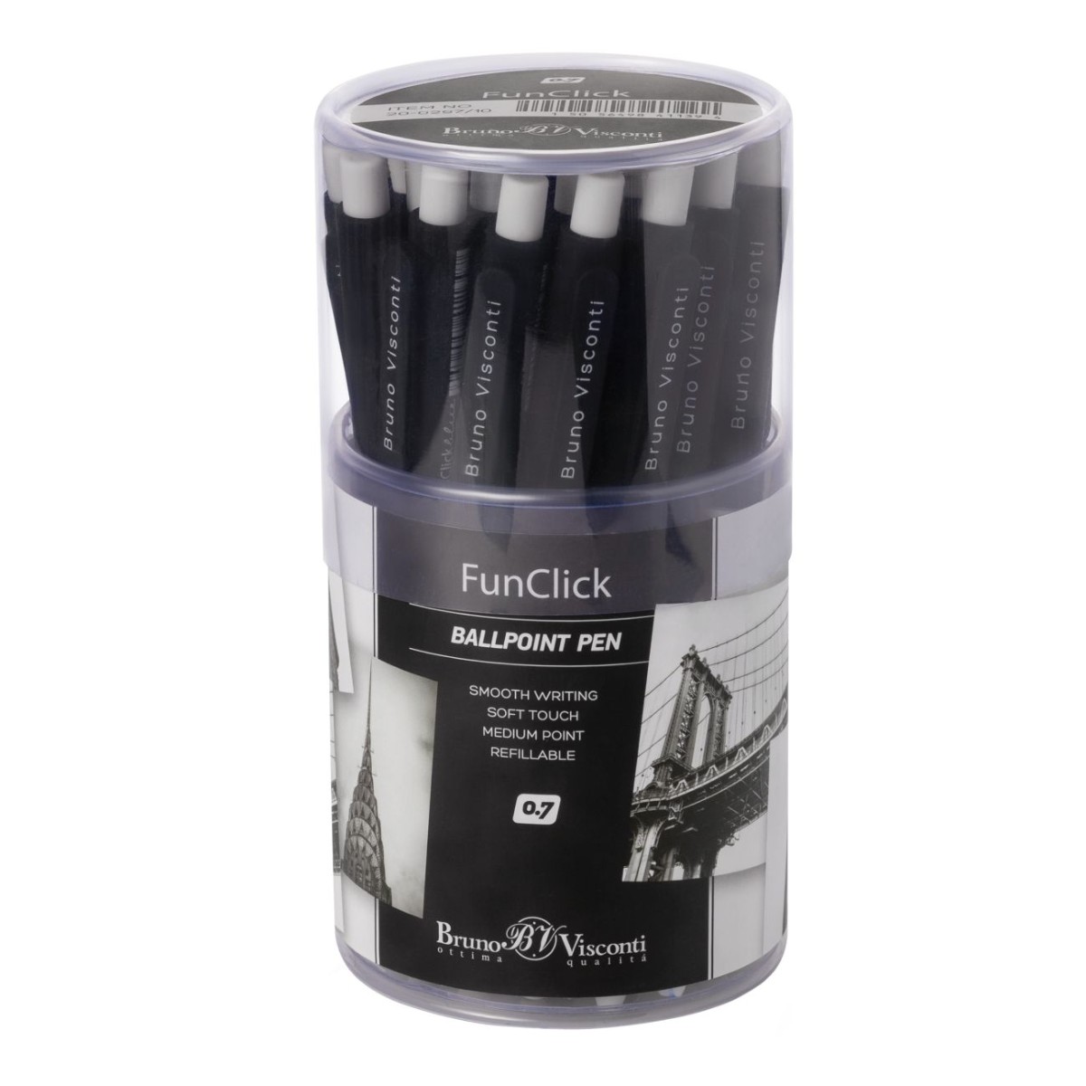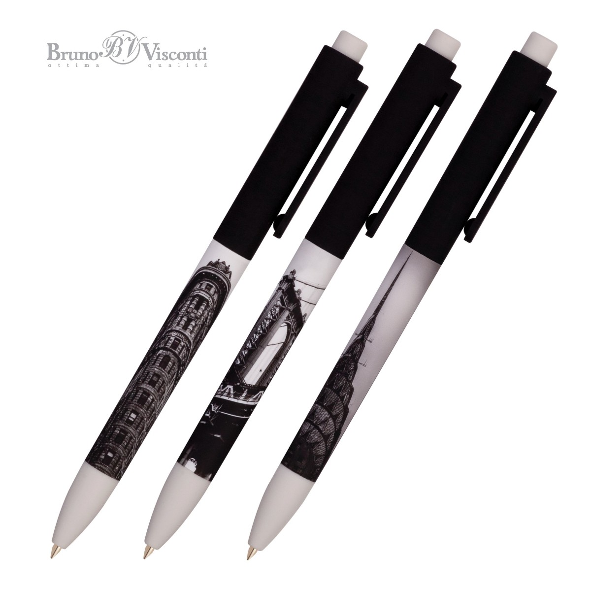 Ручка шариковая синяя BV FunClick New York 0,7мм принт