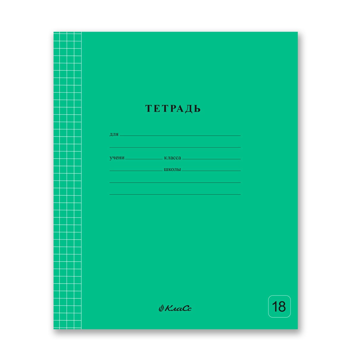 Тетрадь 18л клетка Однотонная. Классная Зеленая