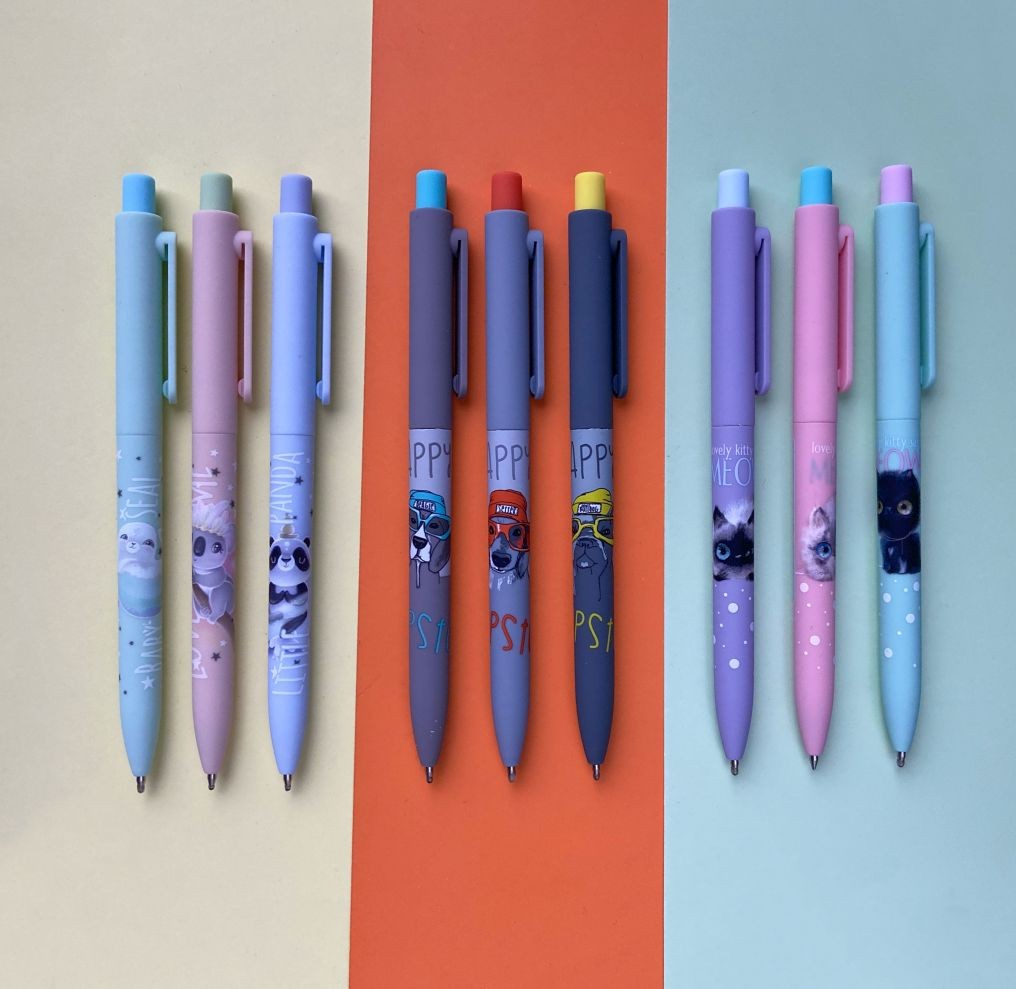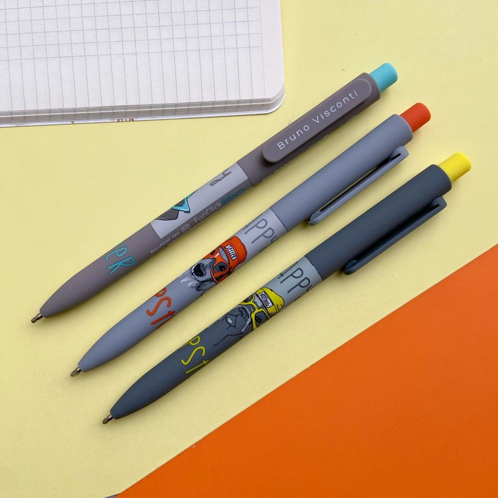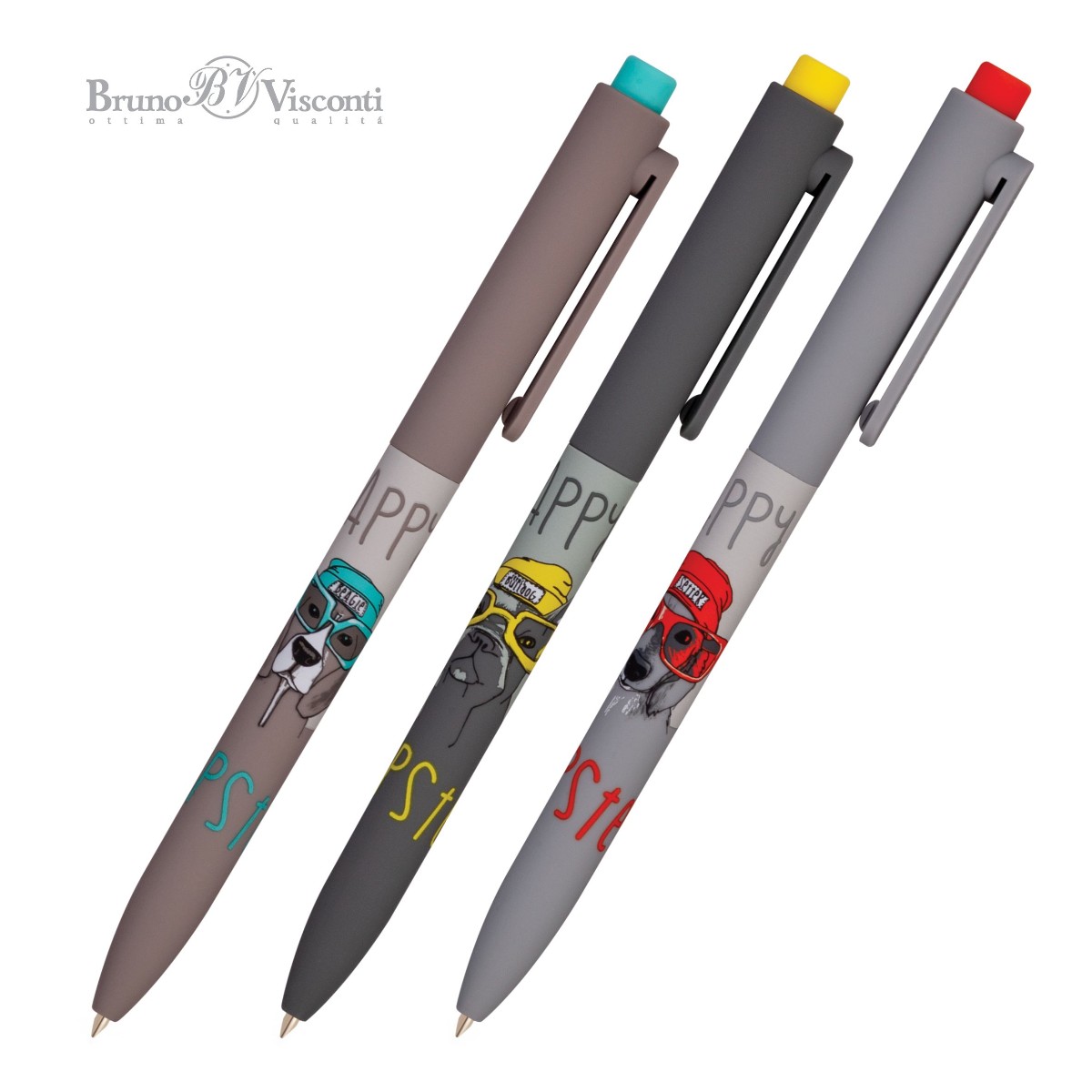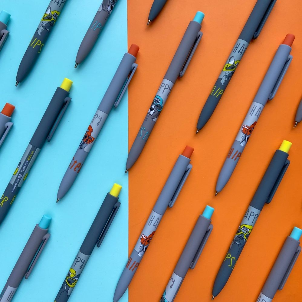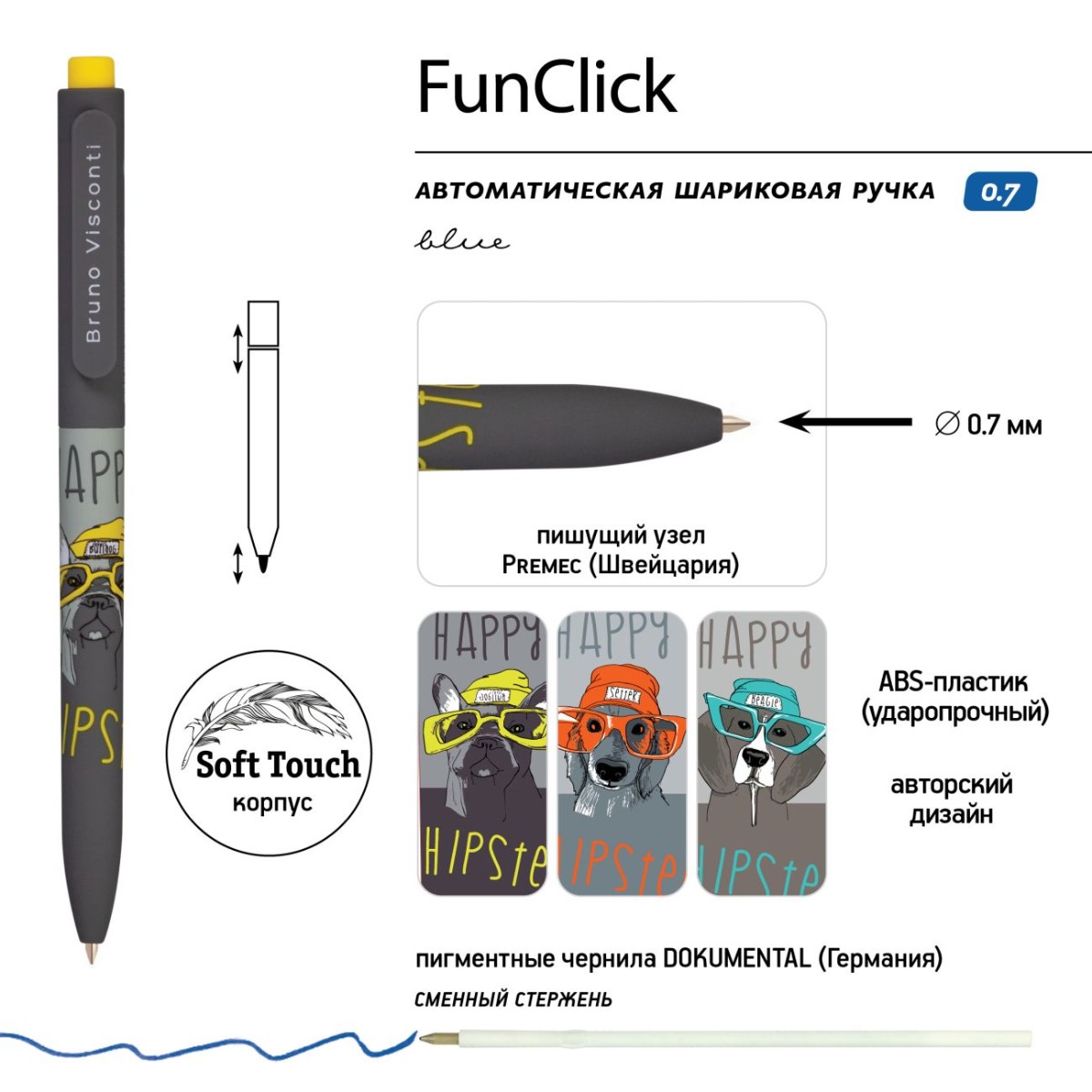 Ручка шариковая синяя BV FunClick Псы на стиле 0,7мм принт