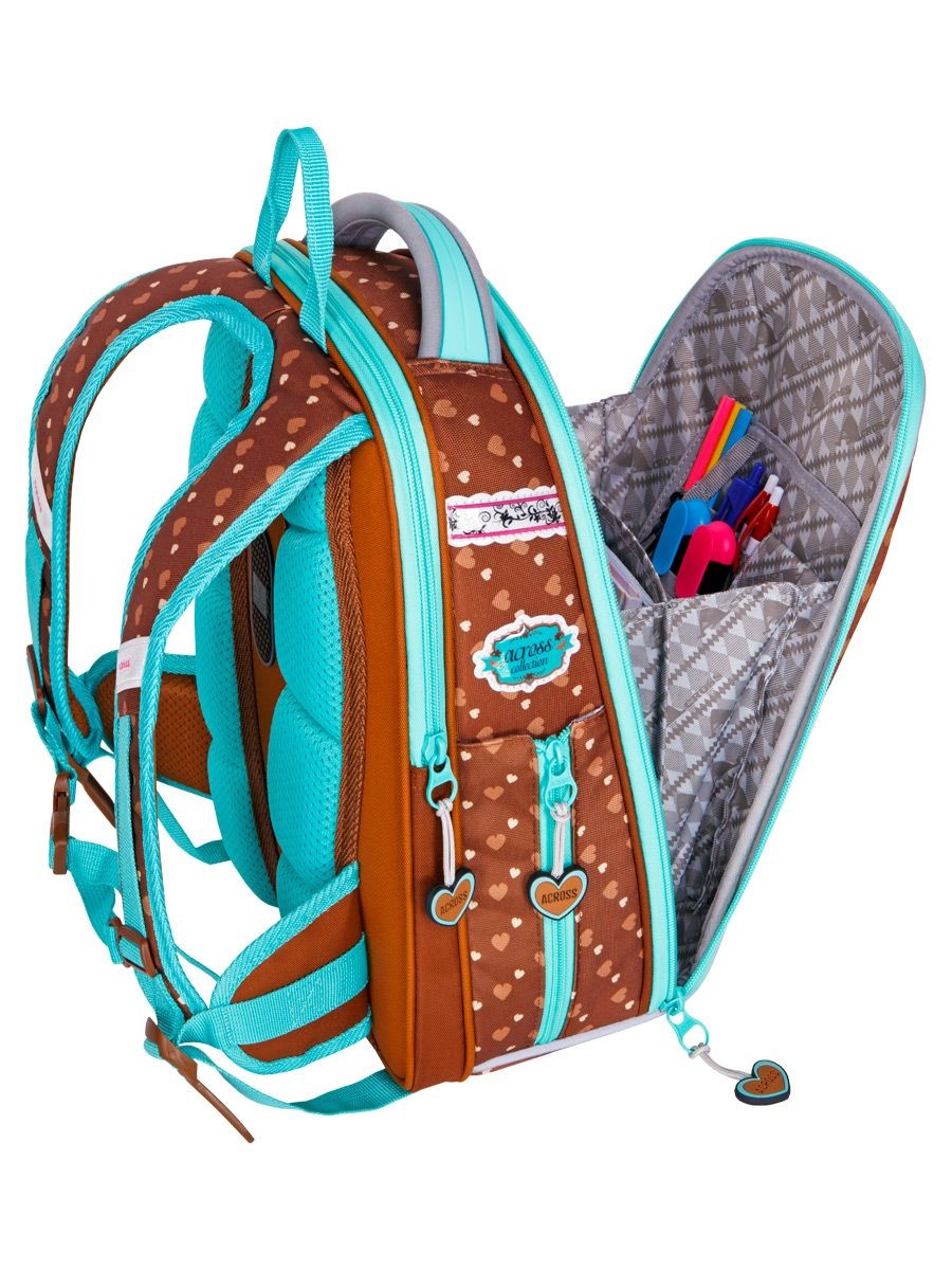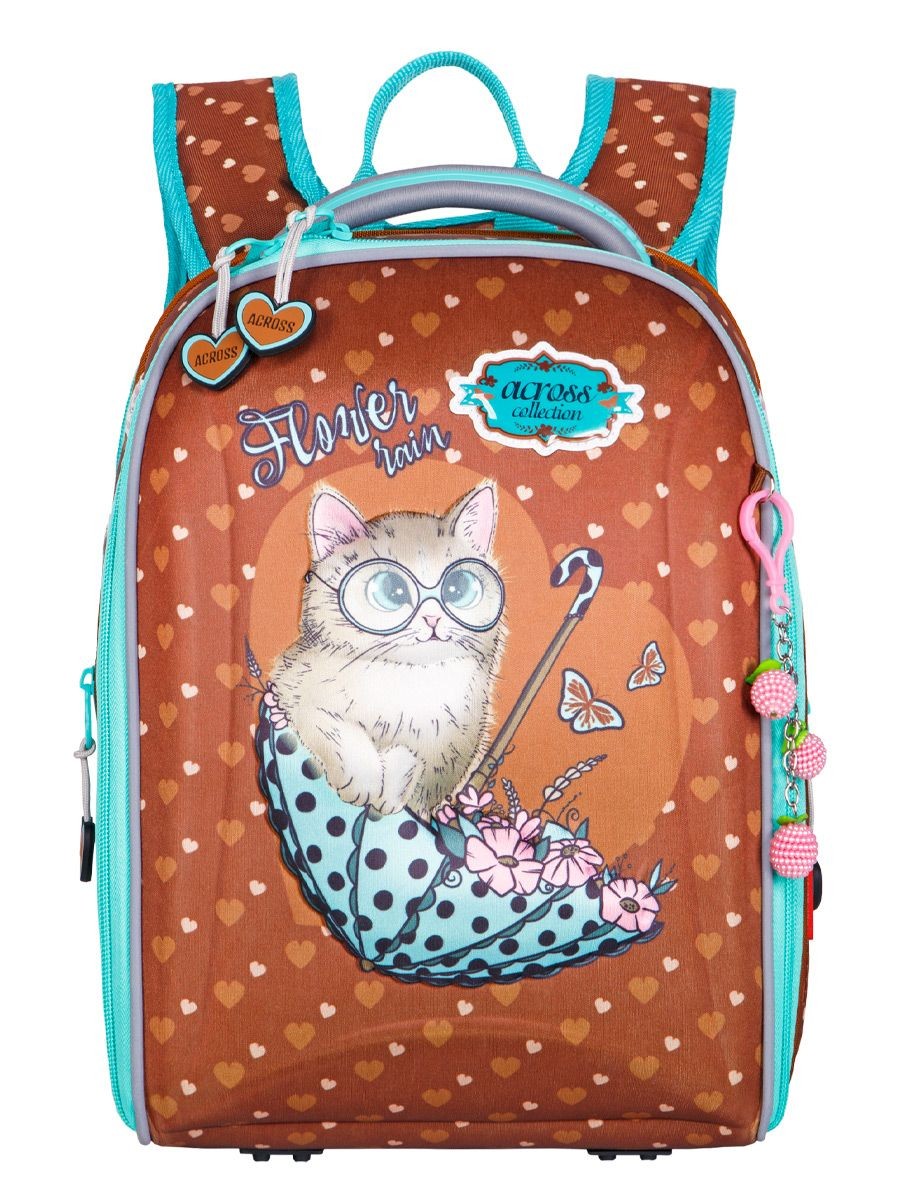 Ранец панцирный Across Котенок в зонтике + мешок, пенал