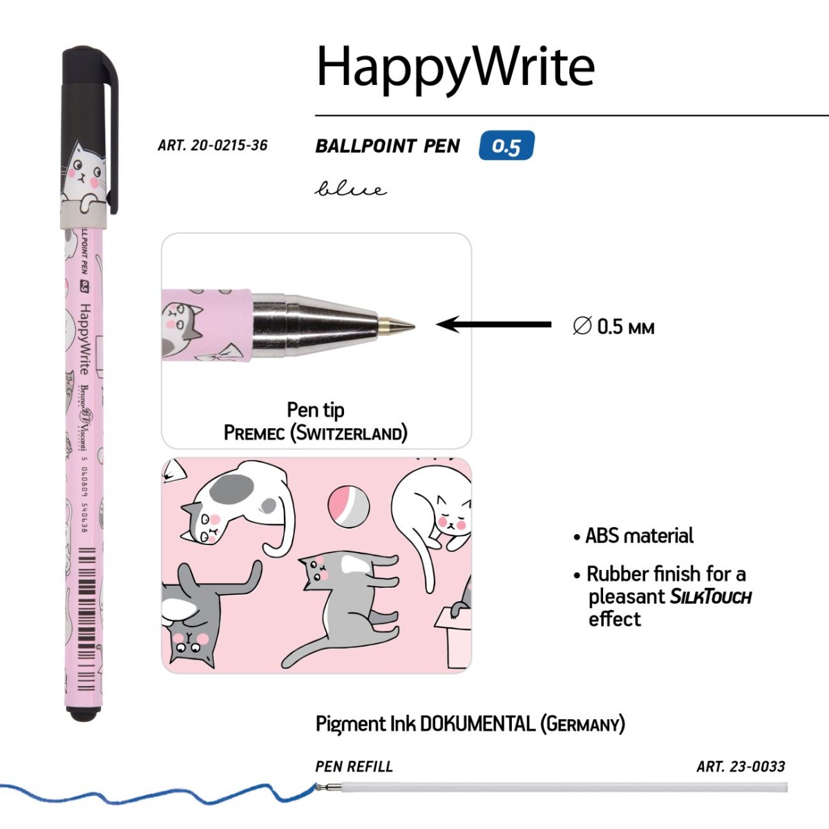 Ручка шариковая синяя BV HappyWrite Друзья. Котята 0,5мм