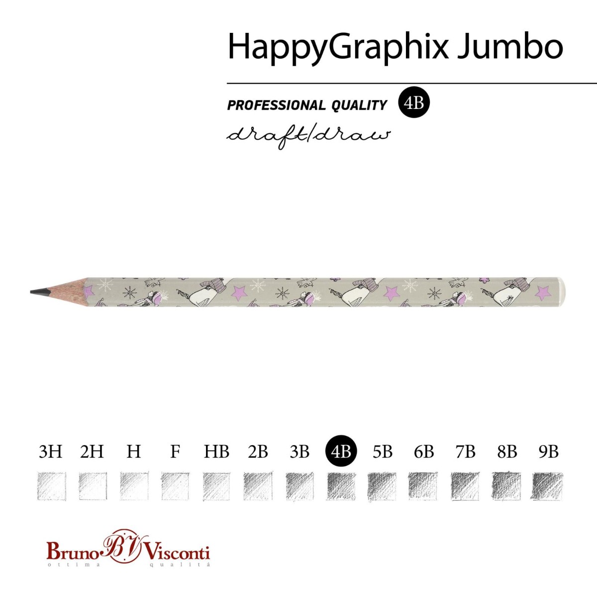 Карандаш ч/гр толстый 4B BV HappyGraphix Jumbo. Девочка и единорог. Птички 3.5 MM