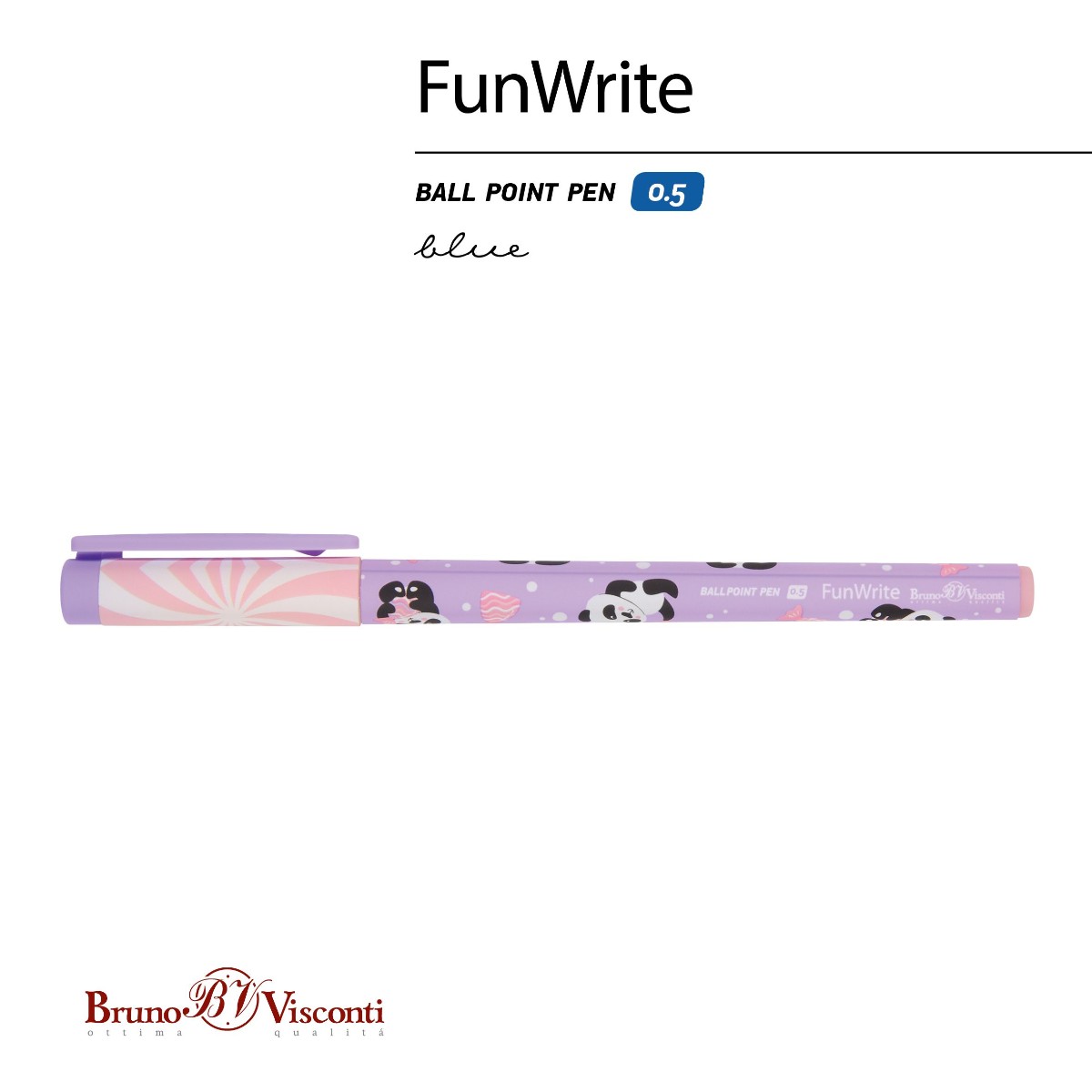 Ручка шариковая синяя BV FunWrite Lolipop. Пандочки 0,5мм принт