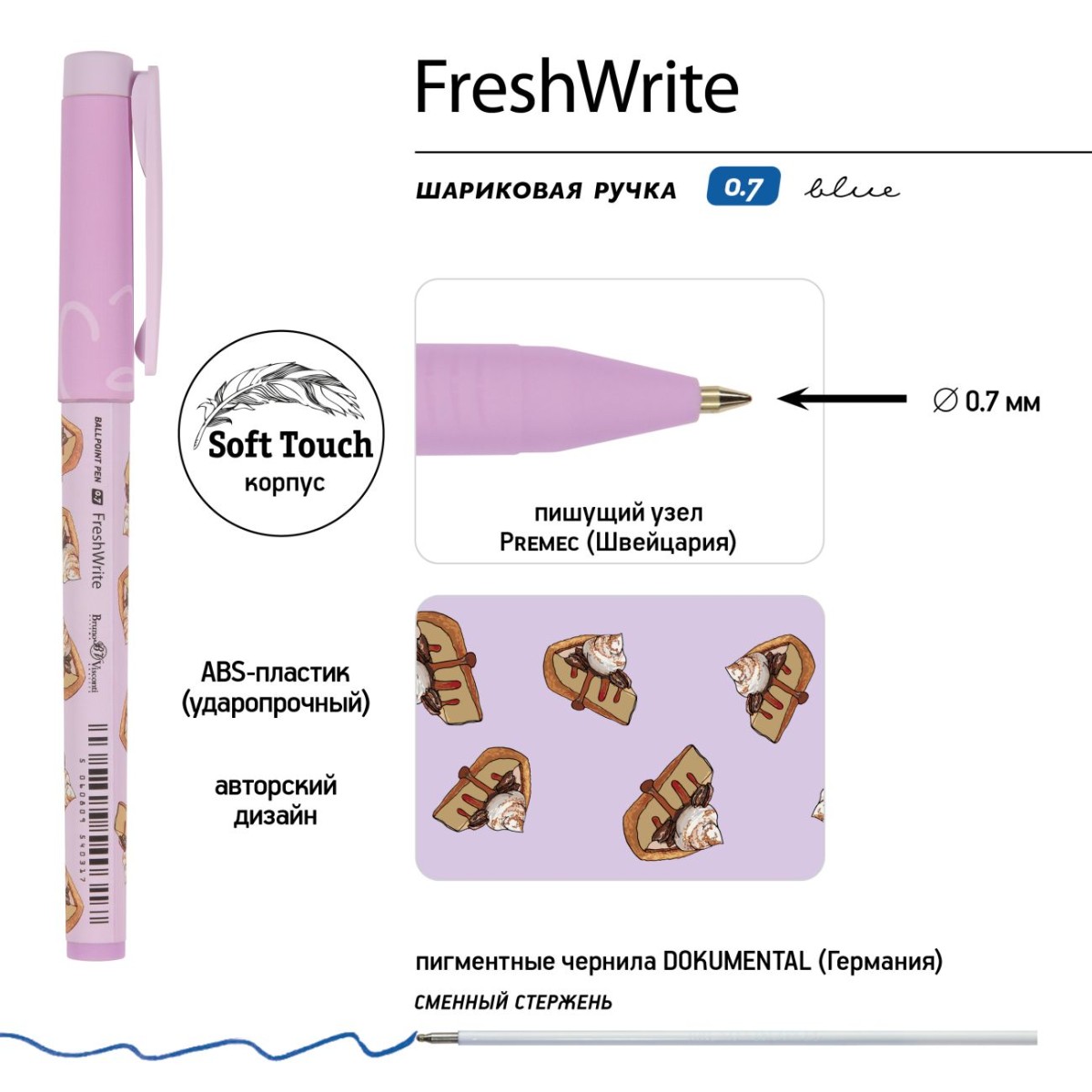 Ручка шариковая синяя BV FirstWrite Кофемания. Чизкейк 0,7мм принт