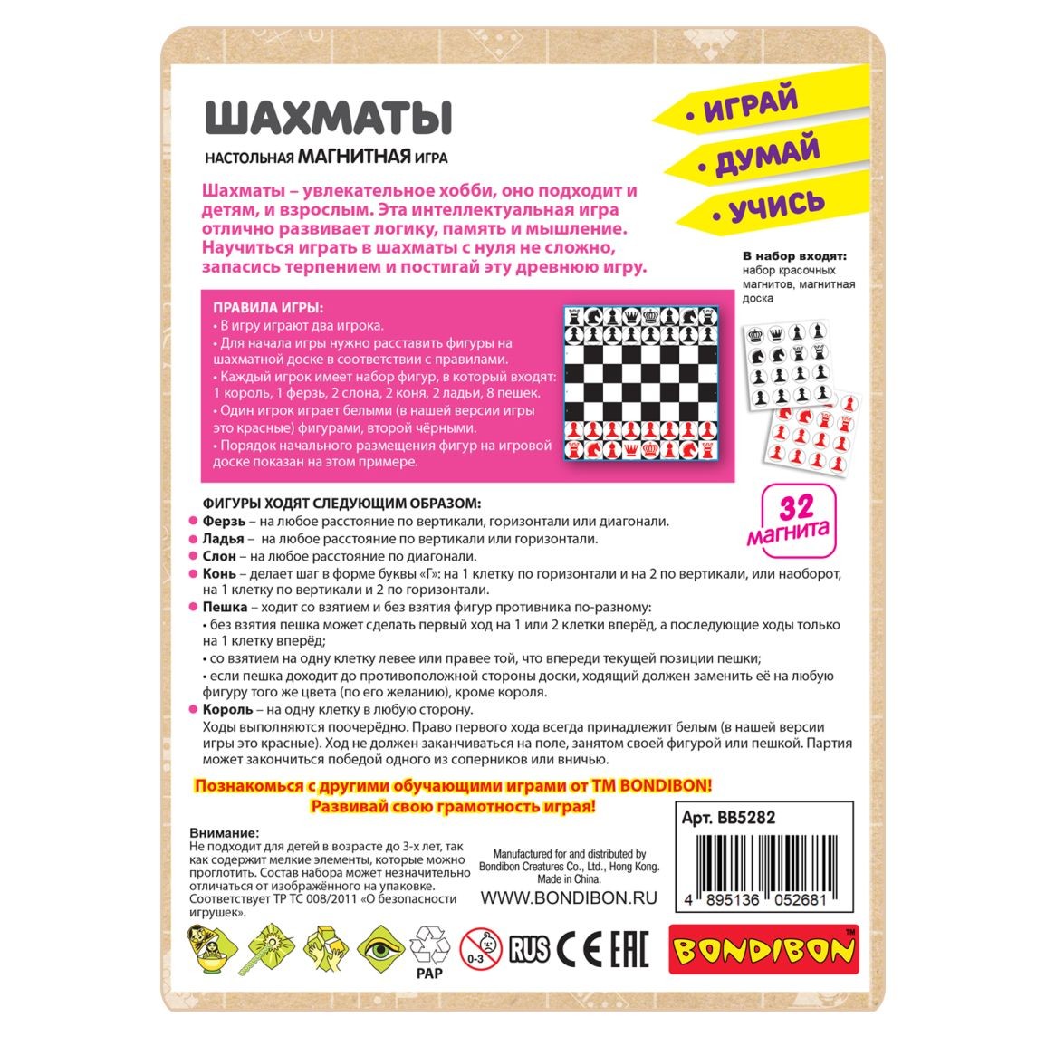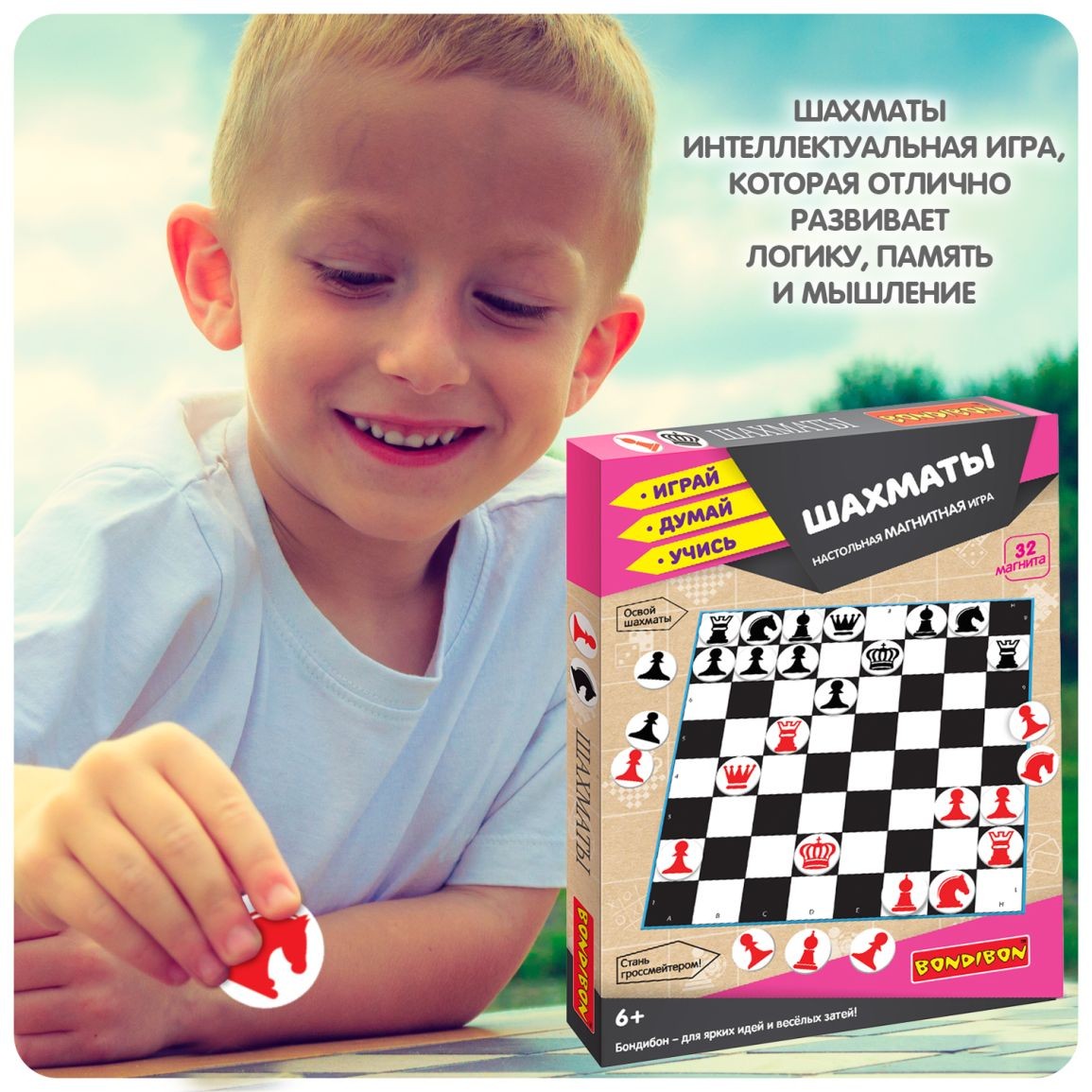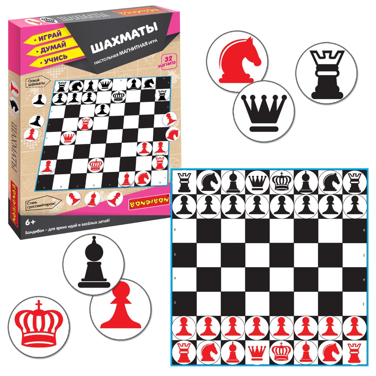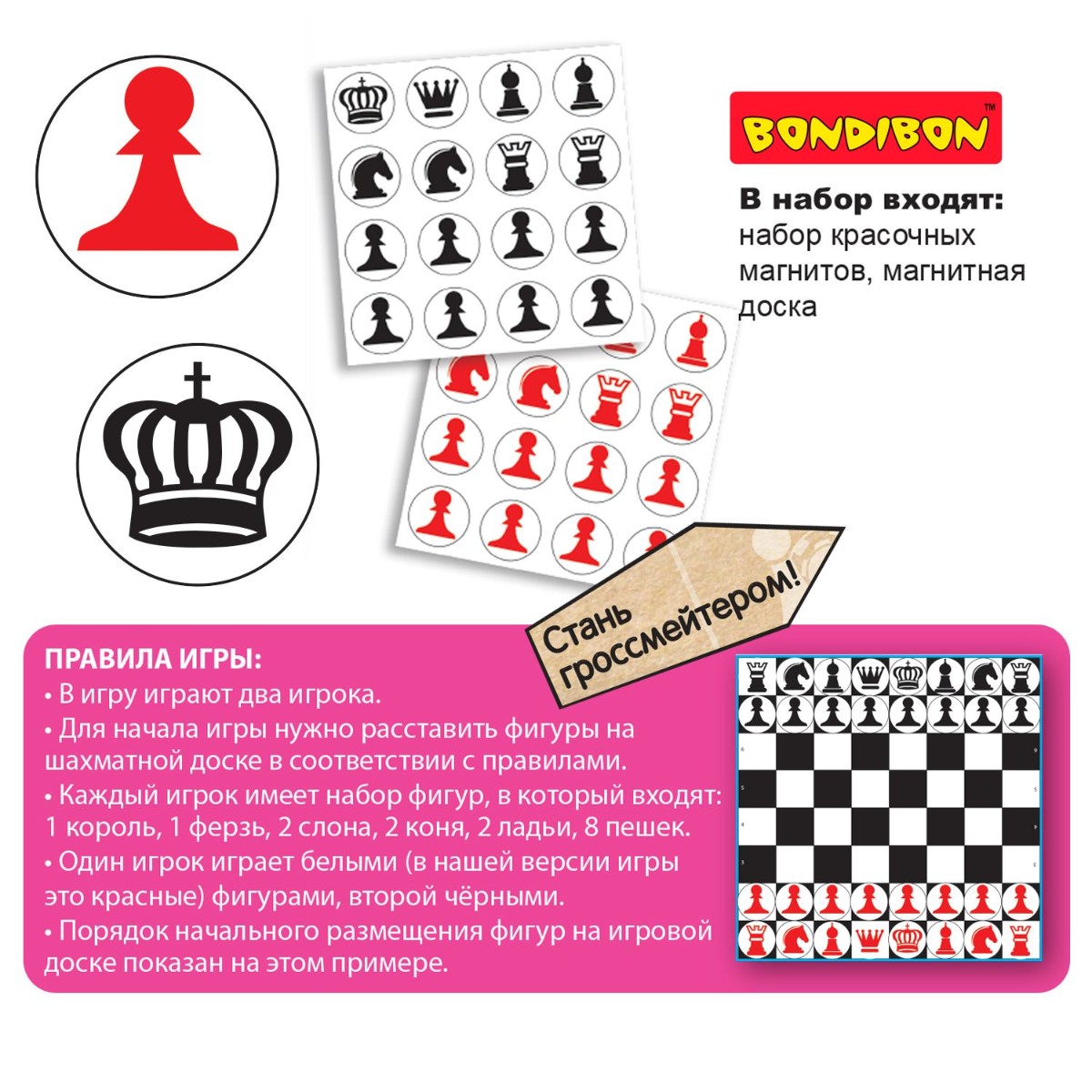 Познакомьте ребенка с обучающей магнитной игрой "Шахматы" Bondibon, развивайте важные навыки и проводите время с пользой.