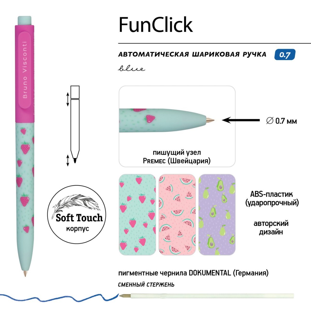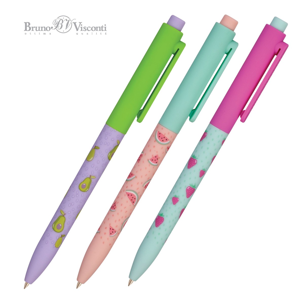 Ручка шариковая синяя BV FunClick Fruit Rain 0,7мм авт принт