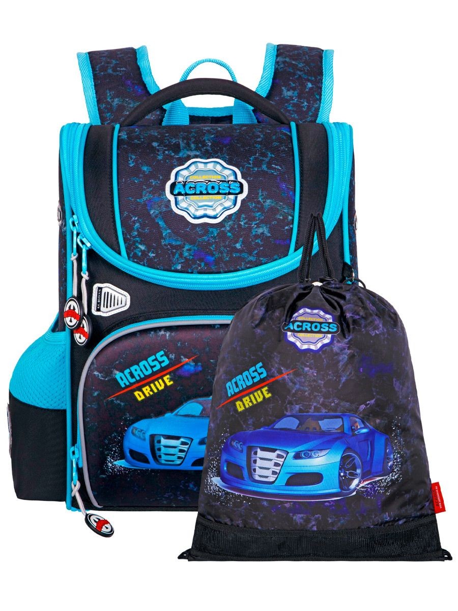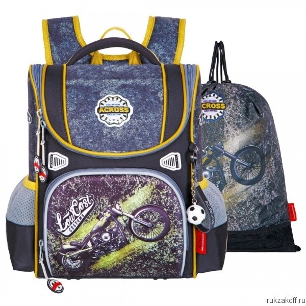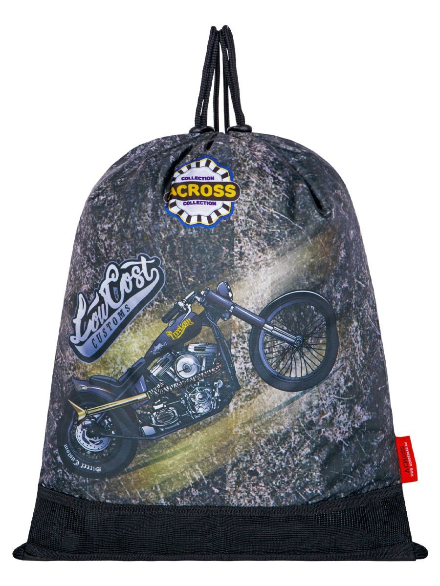 Ранец Across LowCost Customs черный с зеленым (+ мешок д/обуви)