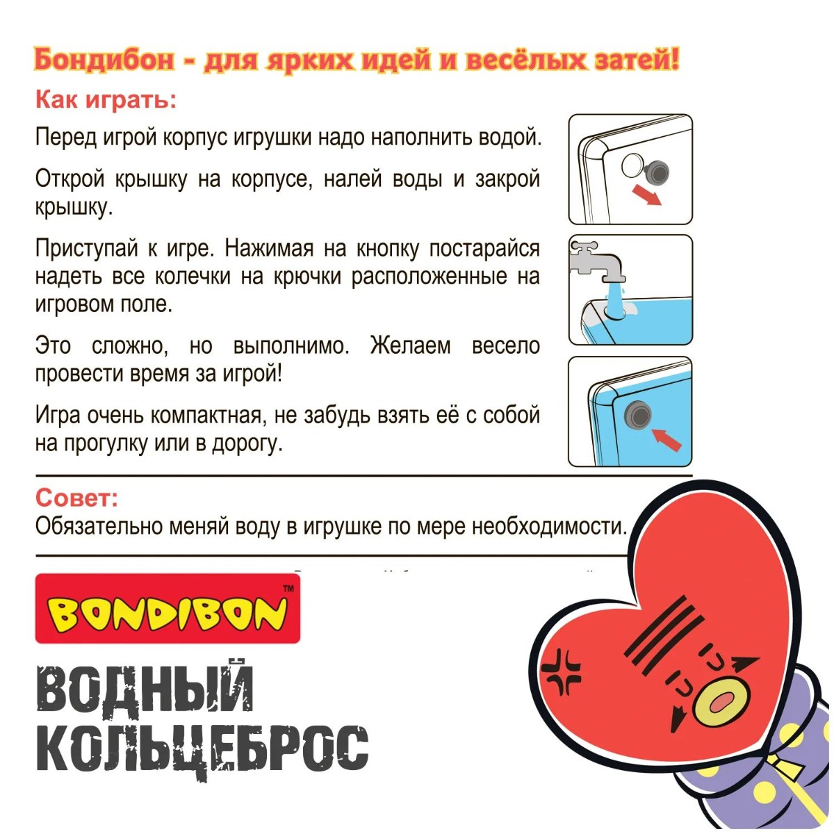 Порадуйте ребенка водной игрой с колечками от Bondibon. КОЛЬЦЕБРОС ВЕСЕЛЫЕ ДРУЗЬЯ принесет Вашему малышу массу положительных эмоций! Юный непоседа не сможет оторваться от увлекательной игры на ловкость и координацию! Кольцеброс продается без воды в гигиенических целях. Вам нужно самостоятельно наполнить корпус водой через специальное отверстие с крышкой. Регулярно меняйте воду в игрушке. Так вода не испортится, не зацветет, в ней не появятся бактерии. Приступайте к игре. Нажимайте на кнопку и старайтесь надеть все разноцветные колечки на крючки, расположенные на игровом поле. Тренируйте меткость, соревнуясь с друзьями. В увлекательной форме развивайте у малышей внимание, координацию, зрительное восприятие и память. Ребенок легко освоит счет, надевая и снимая яркие колечки. Водная игра с колечками КОЛЬЦЕБРОС ВЕСЕЛЫЕ ДРУЗЬЯ очень компактная. Возьмите ее с собой на прогулку, в дорогу, займите детей в очереди. Рекомендуемый возраст 3+ Соберите коллекцию водных игр от Бондибон!