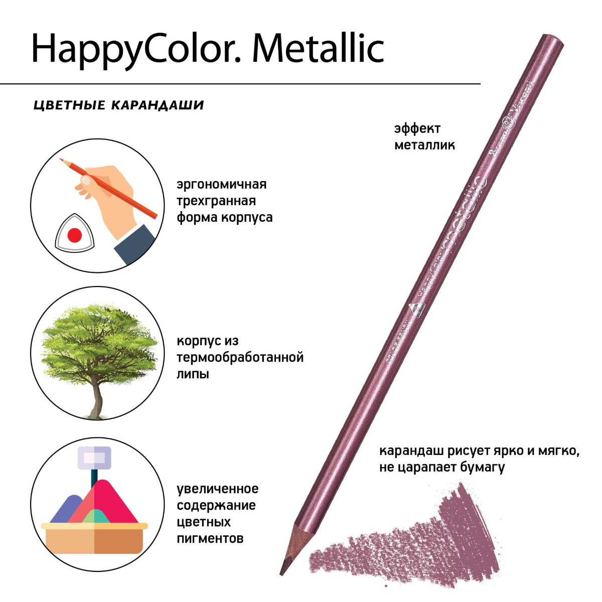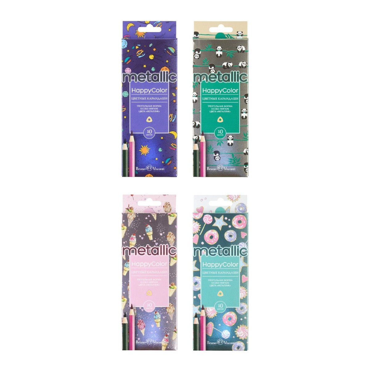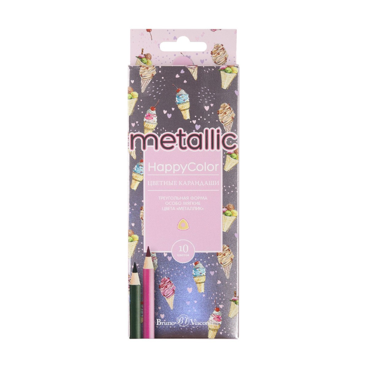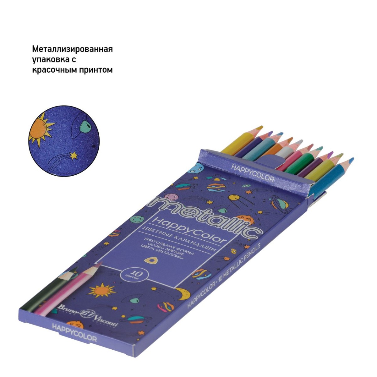 Карандаши цветные 10 цв BV HappyColor металлизиров.
