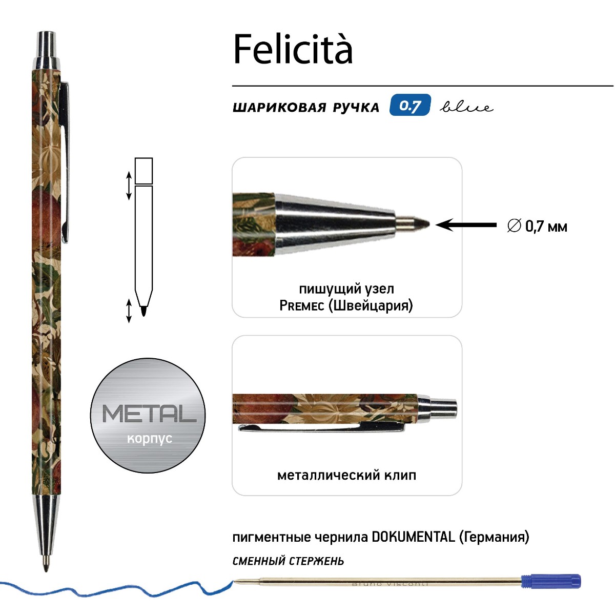 Ручка подар шар BV Felicita синяя 0,7мм Тропические фрукты