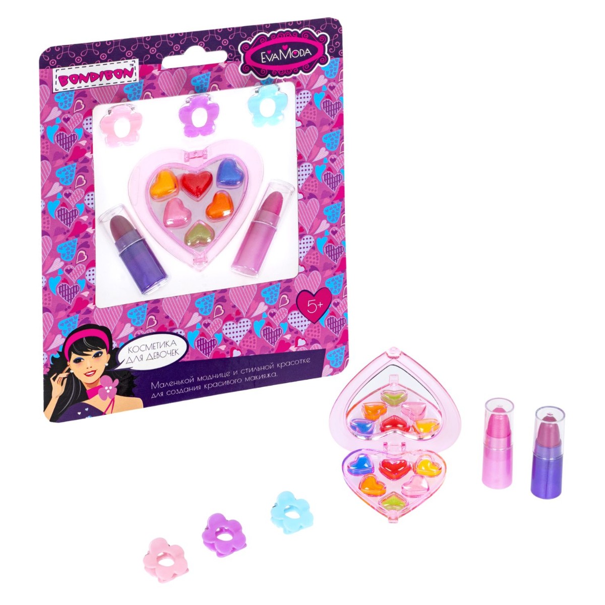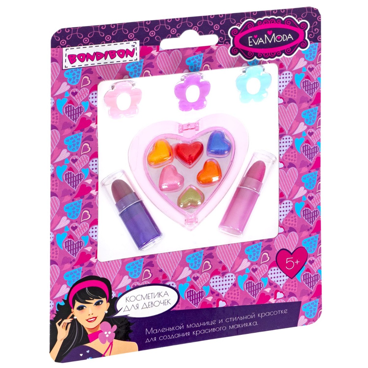 Набор детской декоративной косметики Bondibon Eva Moda: помады 2цв, сердечко с блеском для губ 6цв