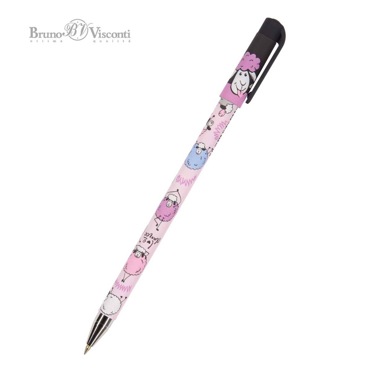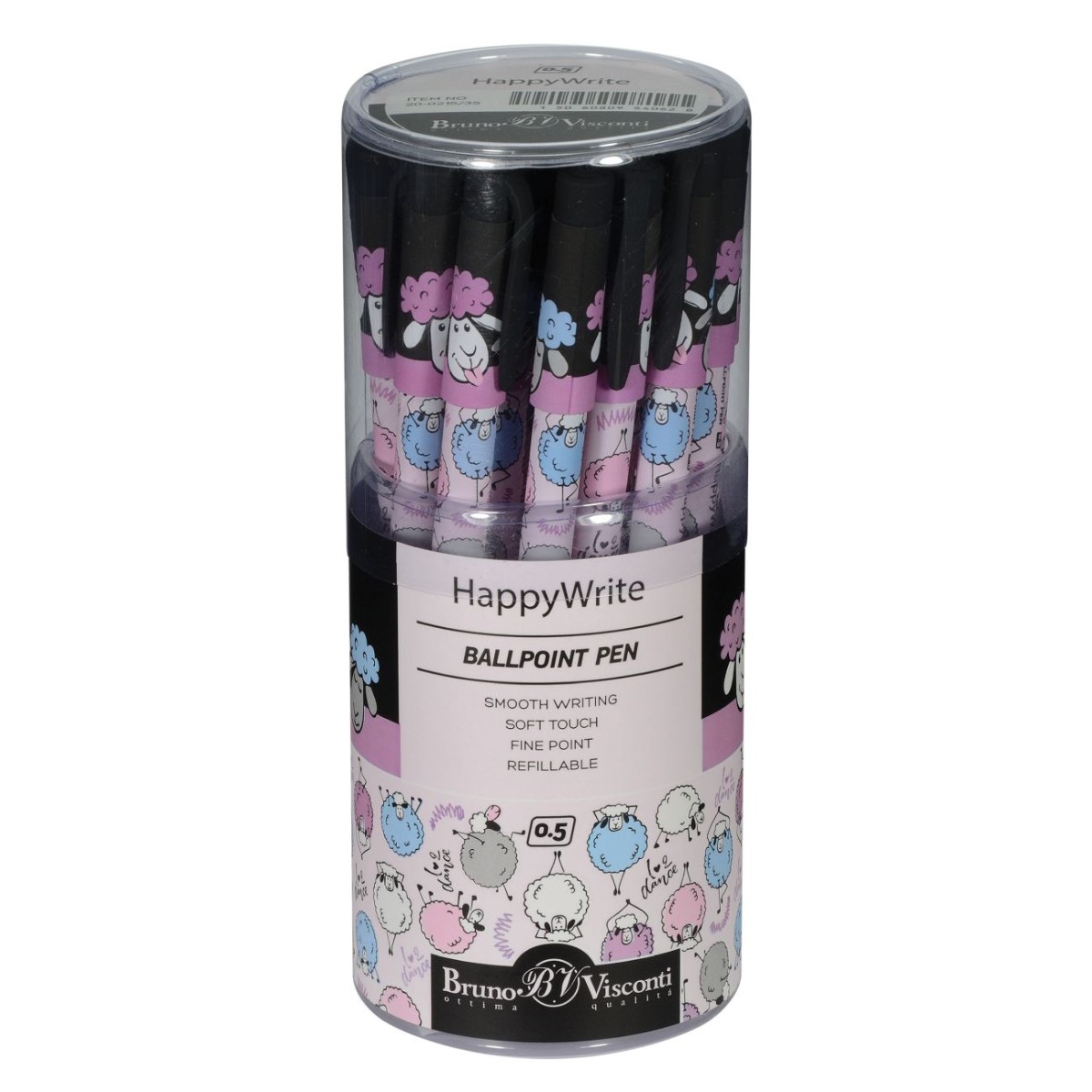 Ручка шариковая синяя BV HappyWrite Друзья. Овечки 0,5мм принт