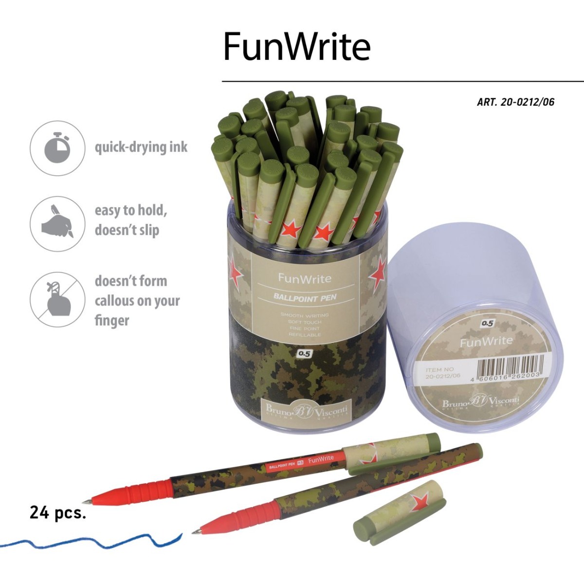 Ручка шариковая синяя BV FunWrite Милитари 0.5мм