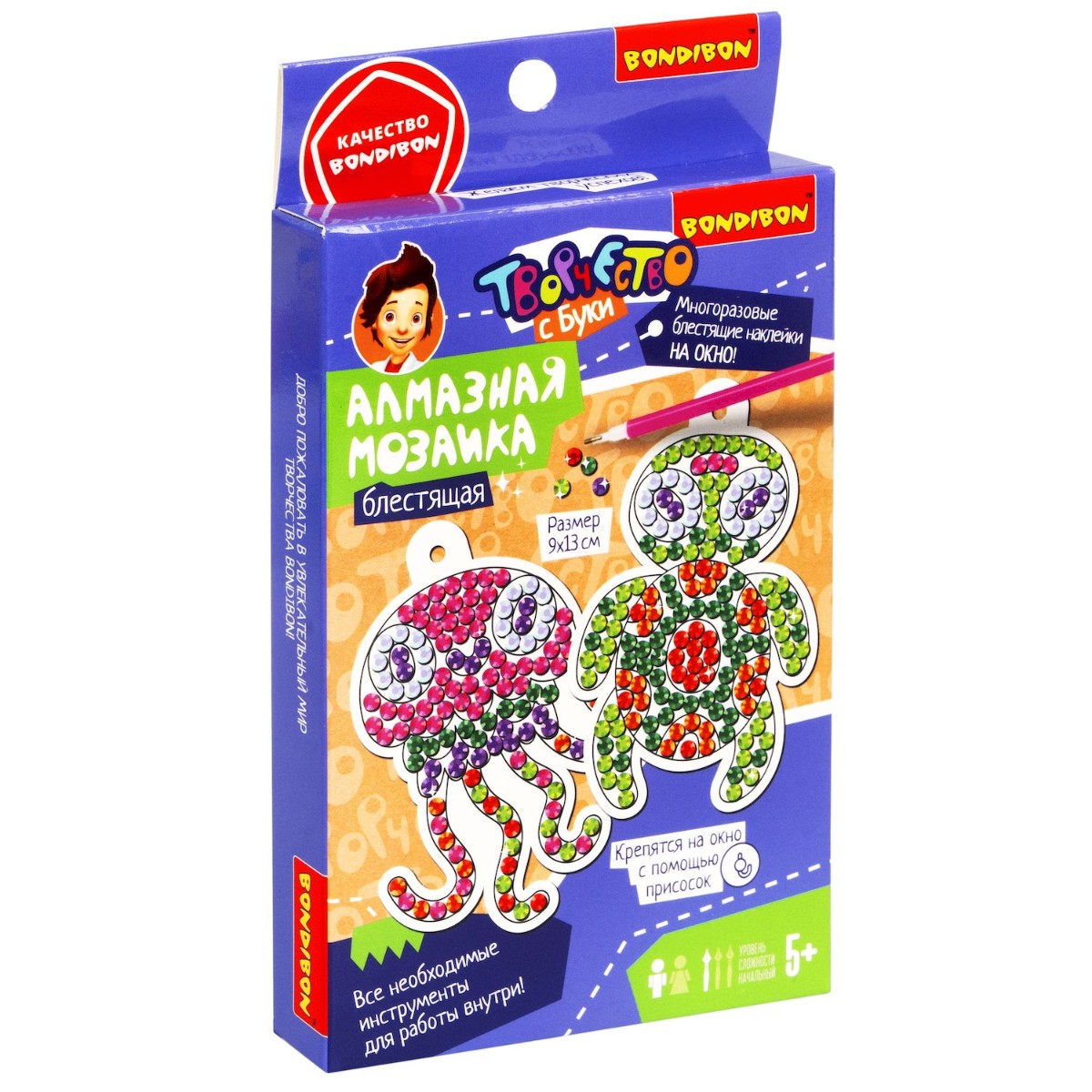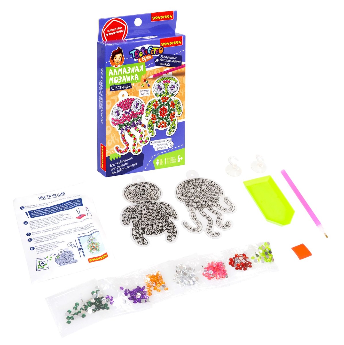 В наборе для поделок 2 основы, присоски на стекло, многоразовый набор мозаики и инструментов.