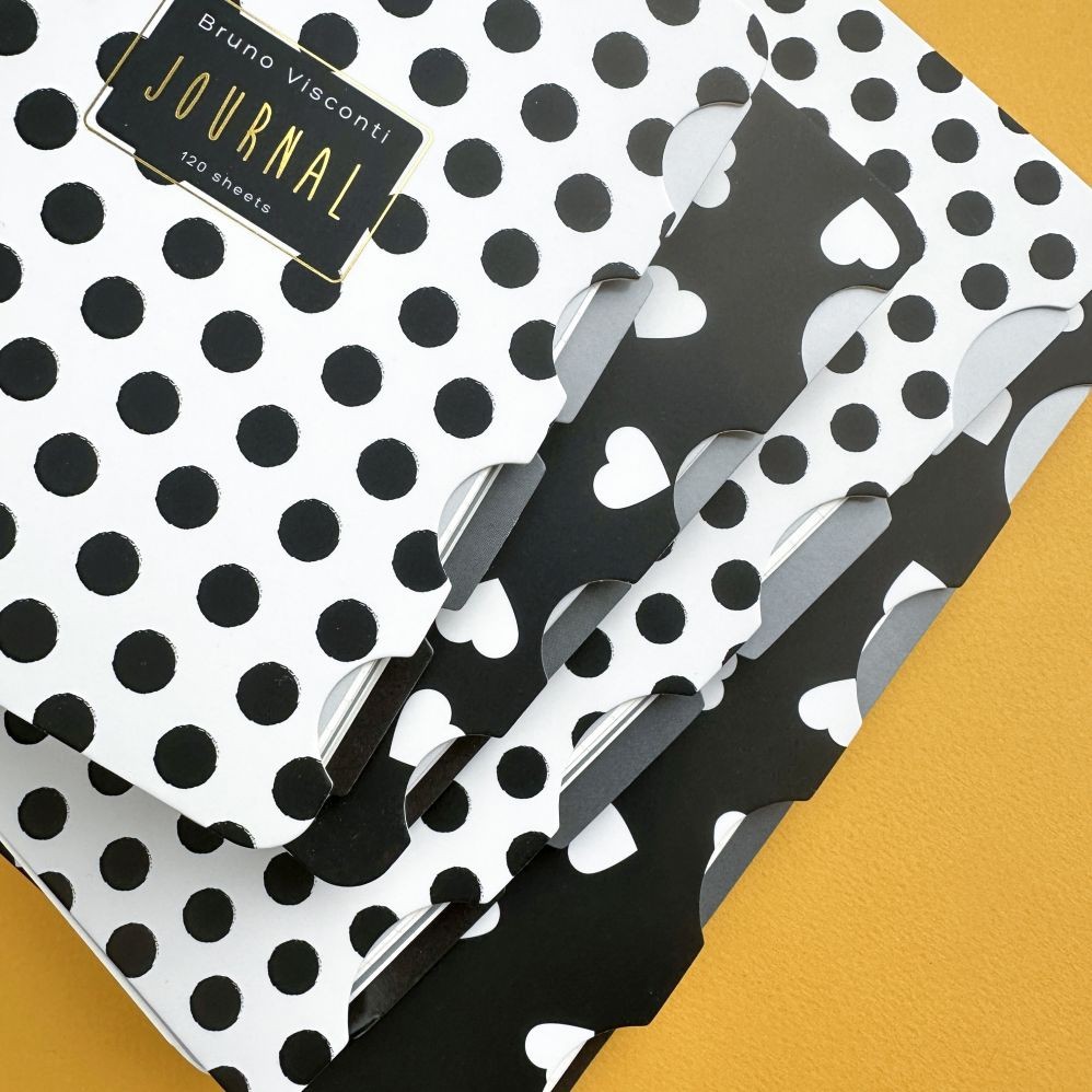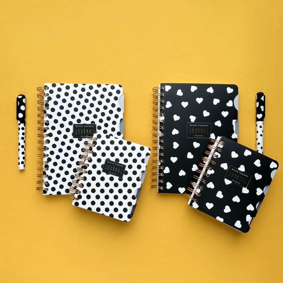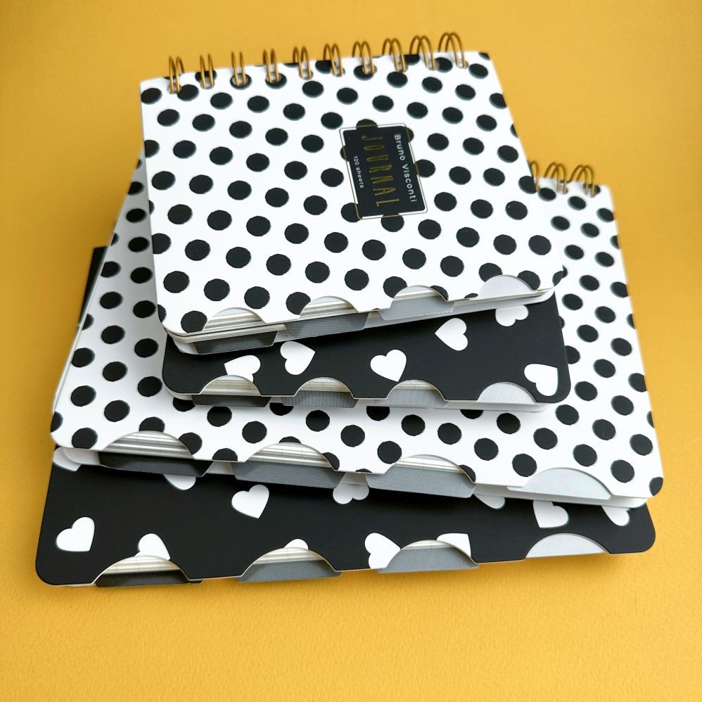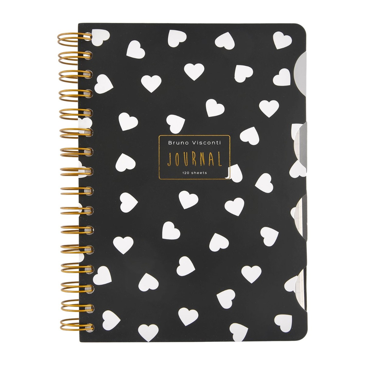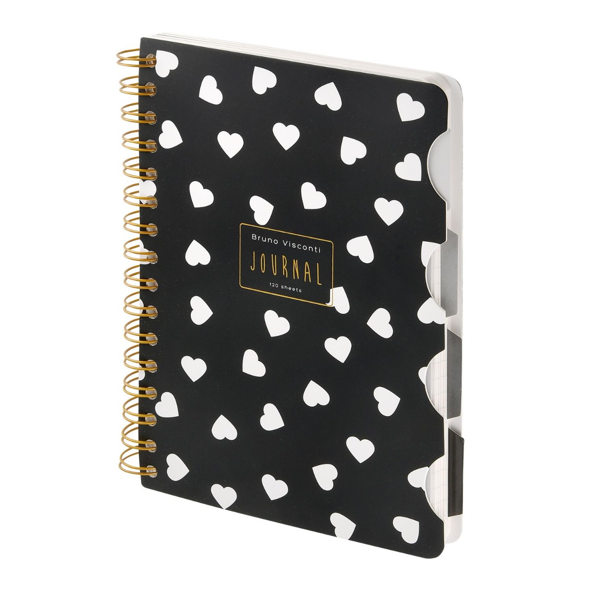 Зап. книжка А5 120л кл спир BV Black&White Сердечки с разделителями