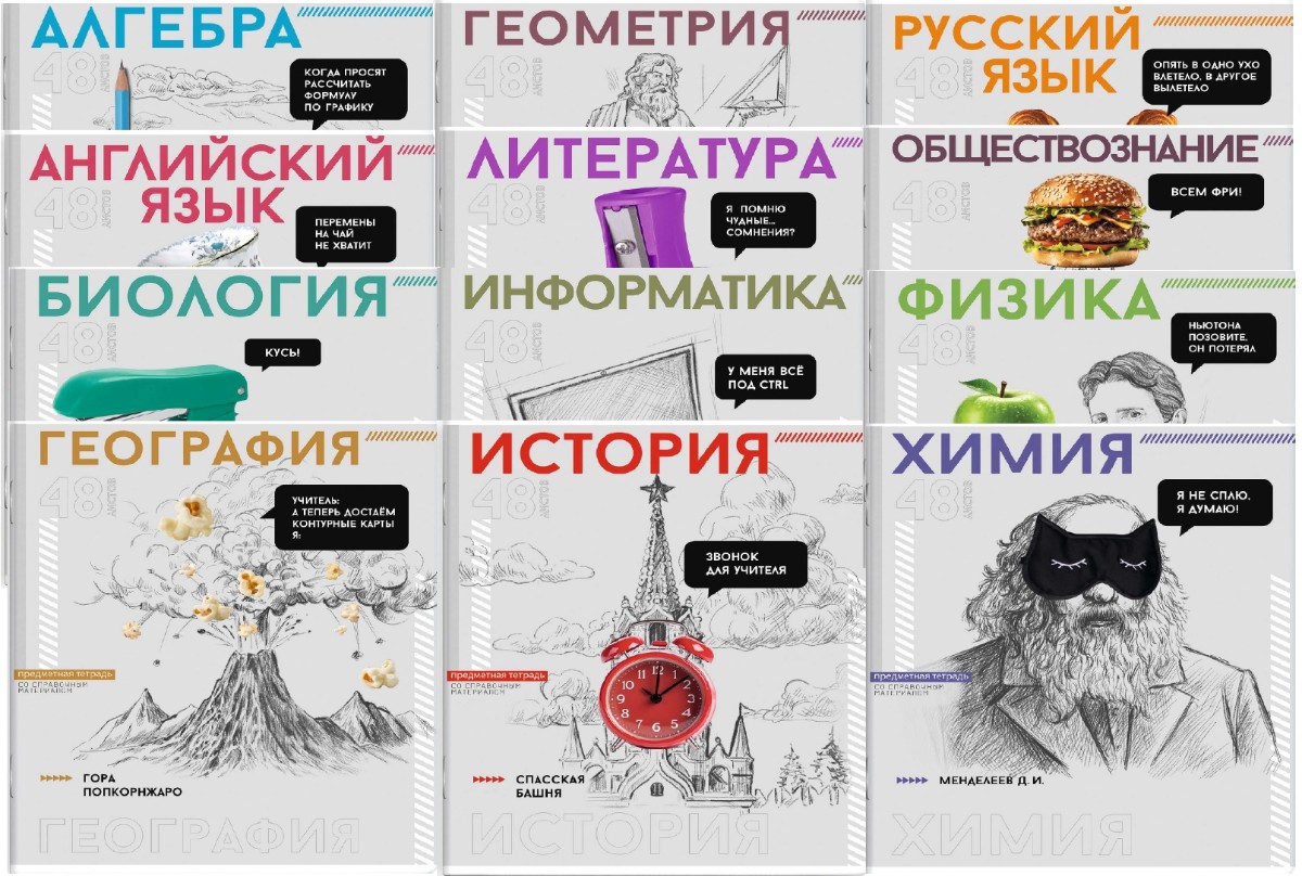 Алгебра, Английский язык, Биология, География, Геометрия, Информатика, История, Обществознание, Физика, Химия, Литература, Русский язык.