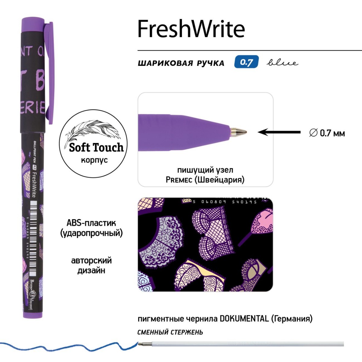 Ручка шариковая синяя BV FreshWrite Дамские штучки. Ажур