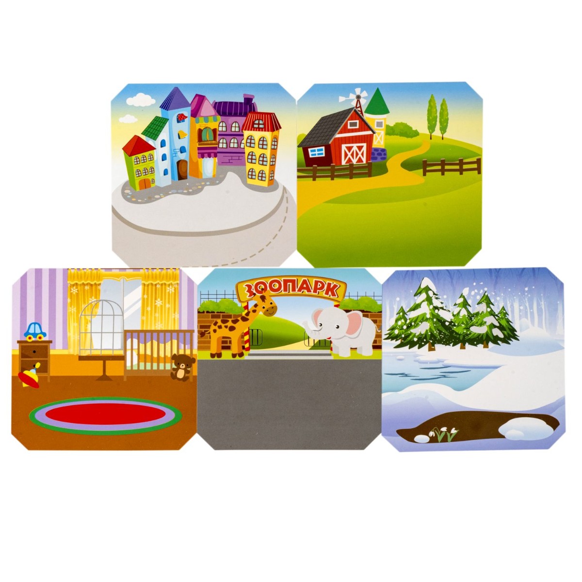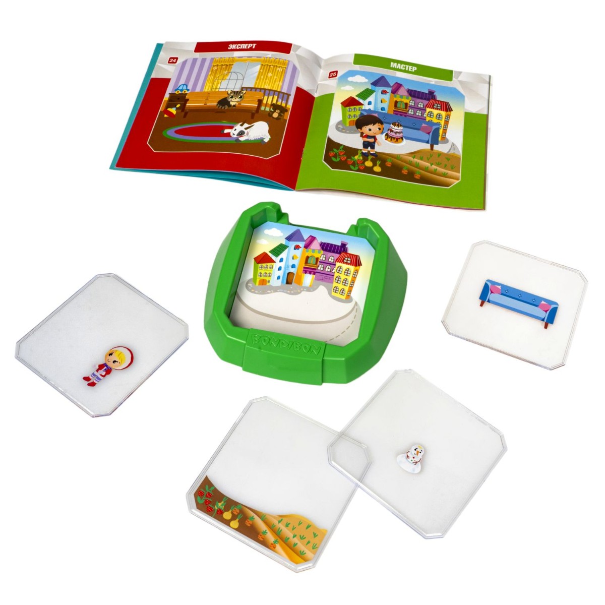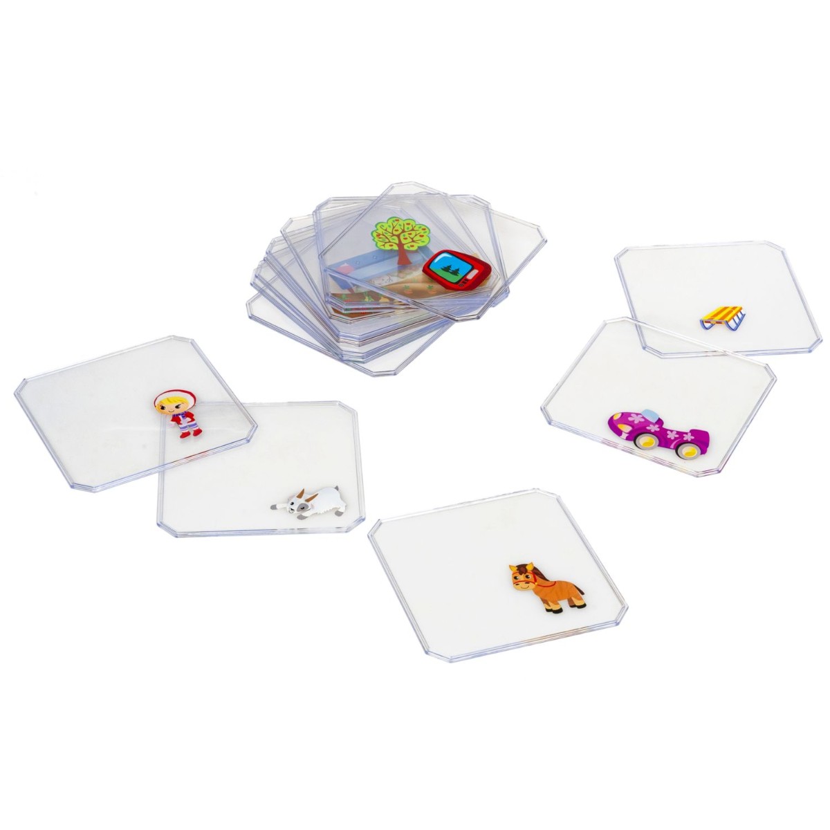 В комплекте: 1 подставка, 5 карточек-основ, 14 прозрачных плиток, буклет.