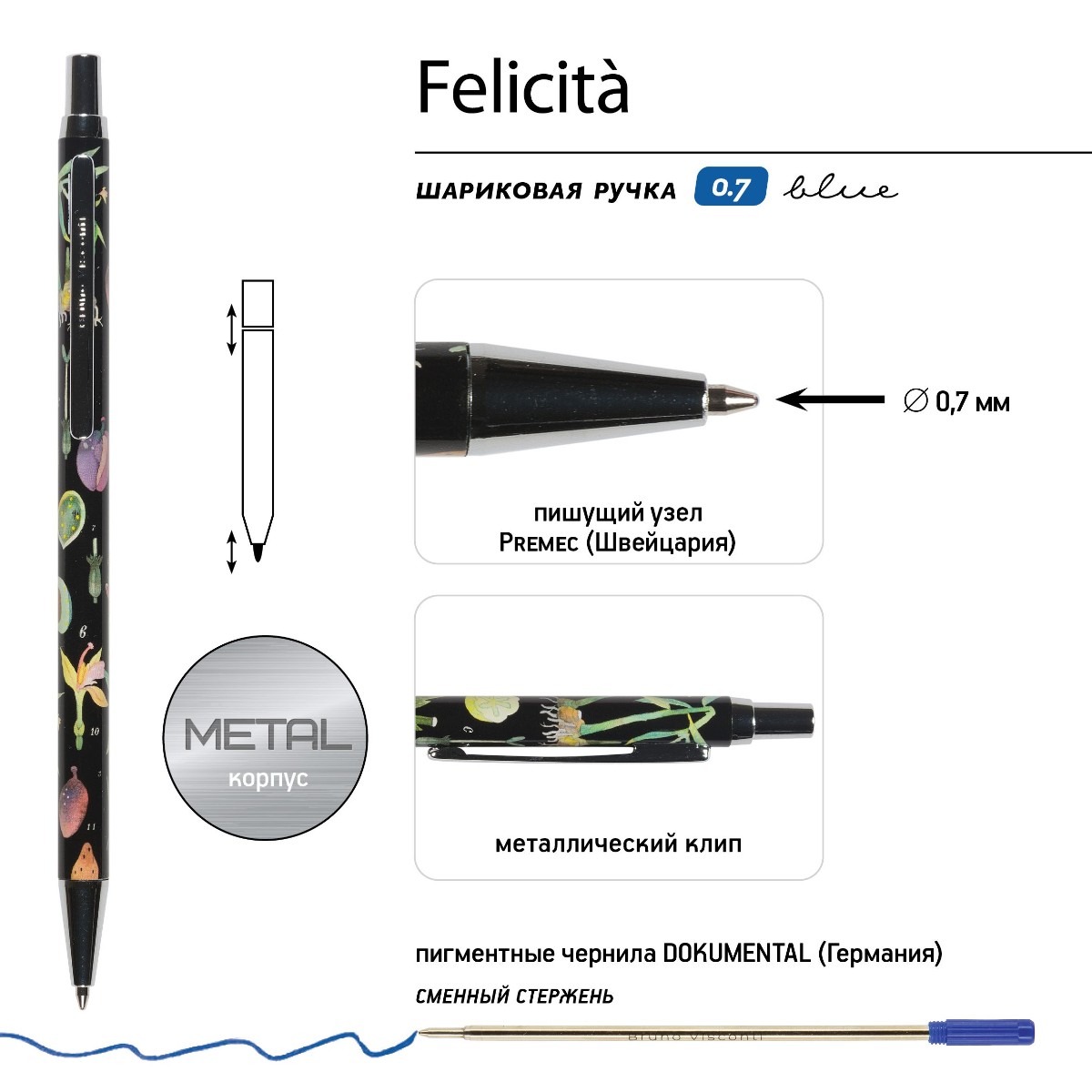 Ручка подар шар BV Felicita синяя 0,7мм Ботаника
