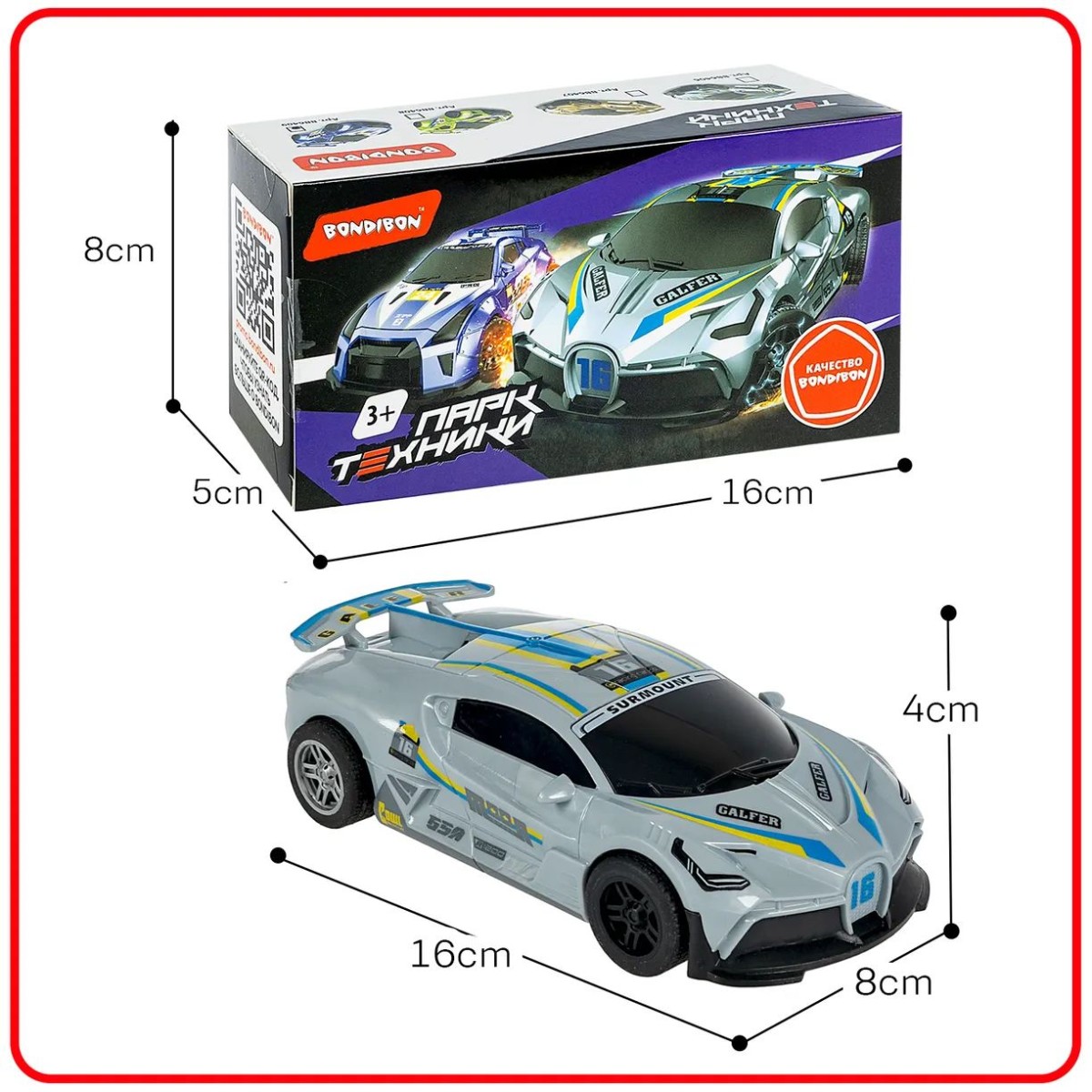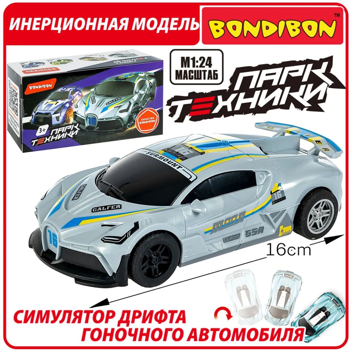 Уменьшенная копия настоящего спорткара – мечта каждого маленького автолюбителя! Серебряная инерционная машина ГОНОЧНАЯ с эффектом дрифта серии ПАРК ТЕХНИКИ от Bondibon – это модель в масштабе 1:24, которая имеет два режима движения и идеально подходит для сюжетно-ролевых игр. Гонка хорошо детализирована и оснащена инерционным механизмом движения pull back. Чтобы машинка поехала вперед, немного откатите ее назад и отпустите. Но это еще не все! Игрушечный транспорт может ехать прямо или дрифтовать. Режим движения можно выбрать при помощи переключателя на дне спортивной машины. Гоночная машинка с интересным функционалом подарит ребенку много часов увлекательной игры и поможет развить воображение, координацию движений, логическое и пространственное мышление. Инерционная машина ГОНОЧНАЯ с эффектом дрифта серии ПАРК ТЕХНИКИ от Бондибон станет отличным подарком для мальчиков. Игрушка выполнена из качественных безопасных материалов. Размер машины 16х7,8х4,2см. Возраст 3+