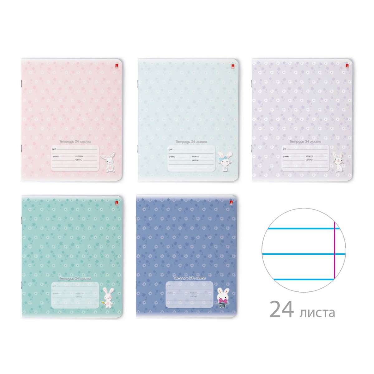 Тетрадь 24л линейка Зефирные зайчата