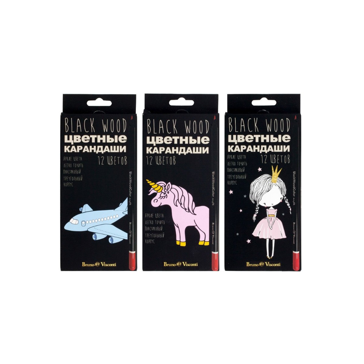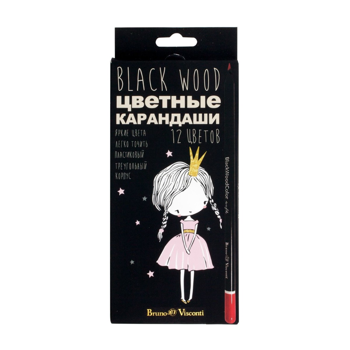 Карандаши цветные 12 цв пластик BV BlackWoodColor