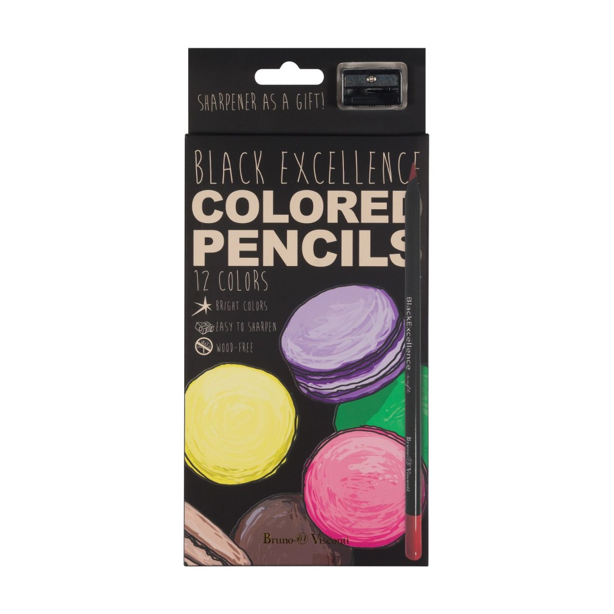 Карандаши цветные 12 цв пластик BV Black Excellence с точилкой