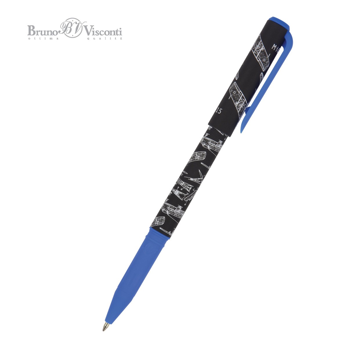 Ручка шариковая синяя BV PrimeWrite. Чертежи. Самолет 0,5мм принт