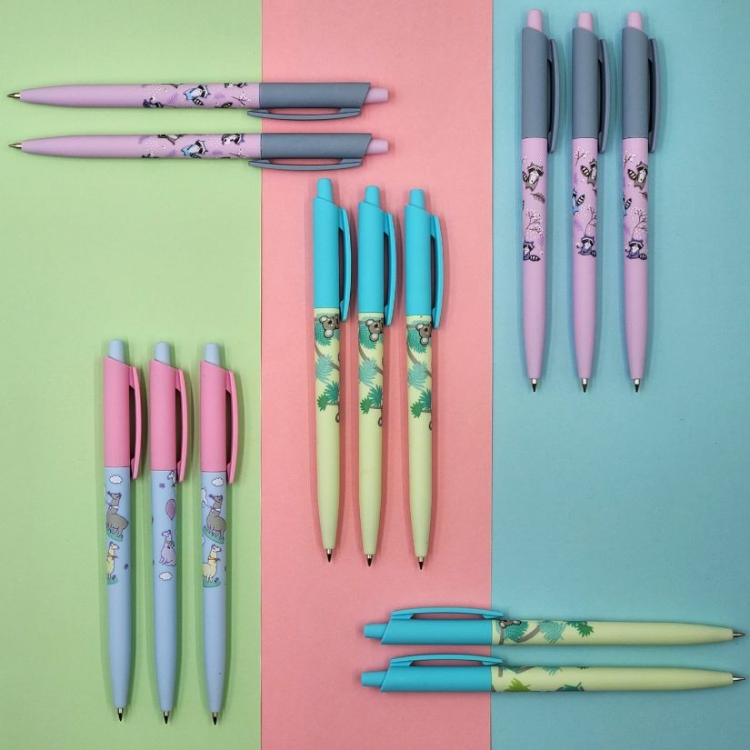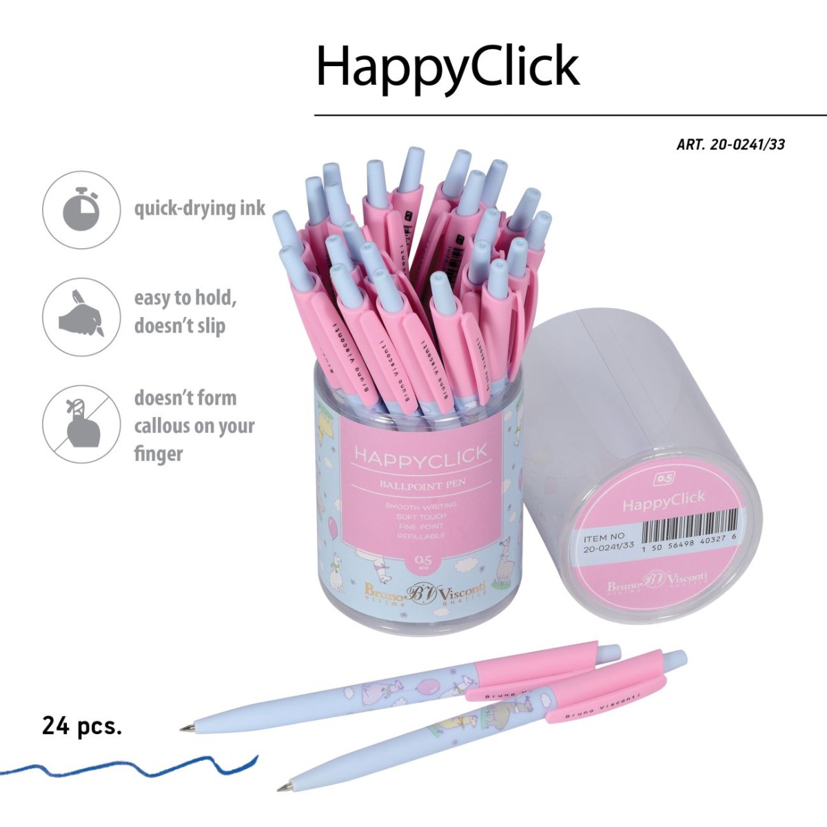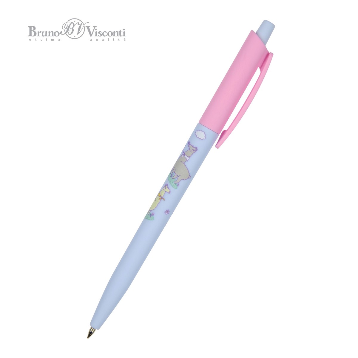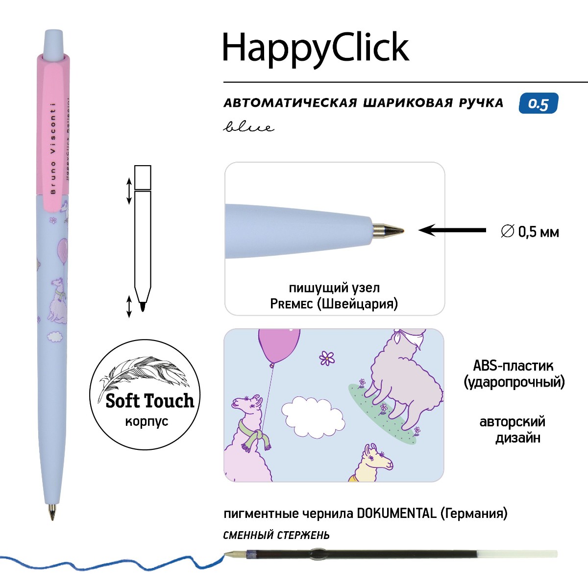 Ручка шариковая синяя BV HappyClick Sweet Animals Ламы в облачках 0,5мм принт