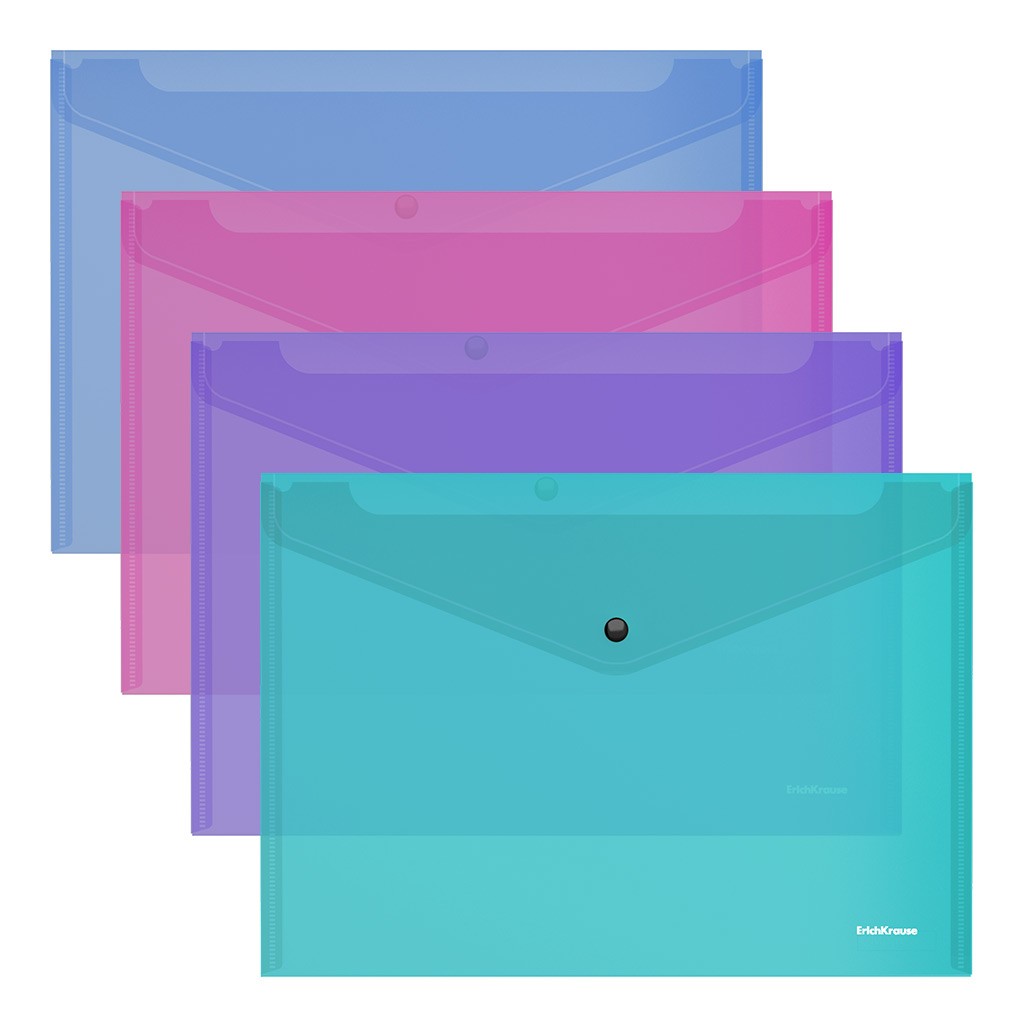 Папка-конверт А4 однотон ассорти полупрозрачная