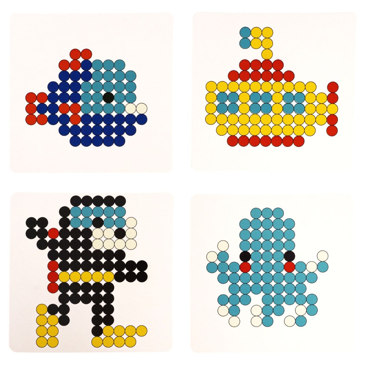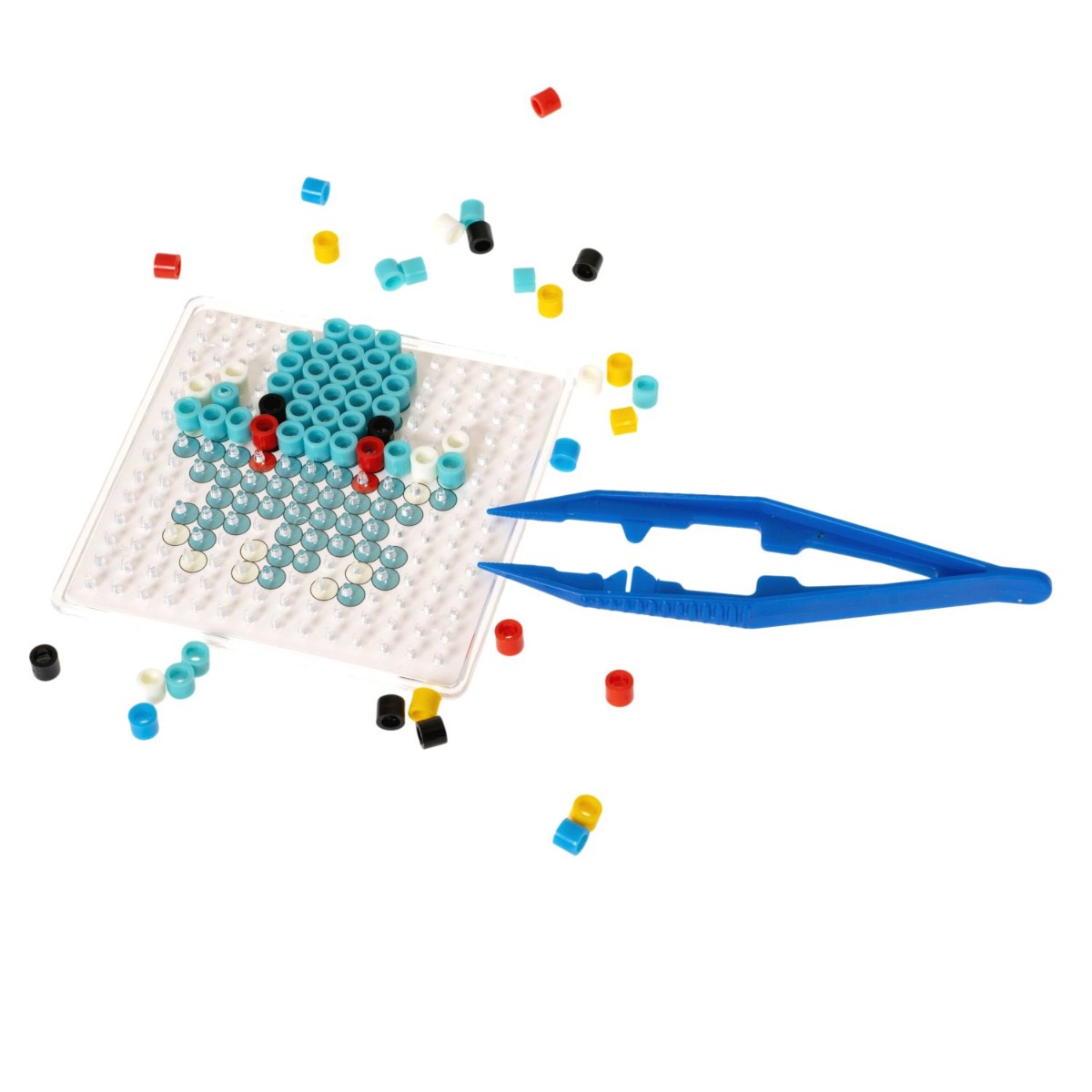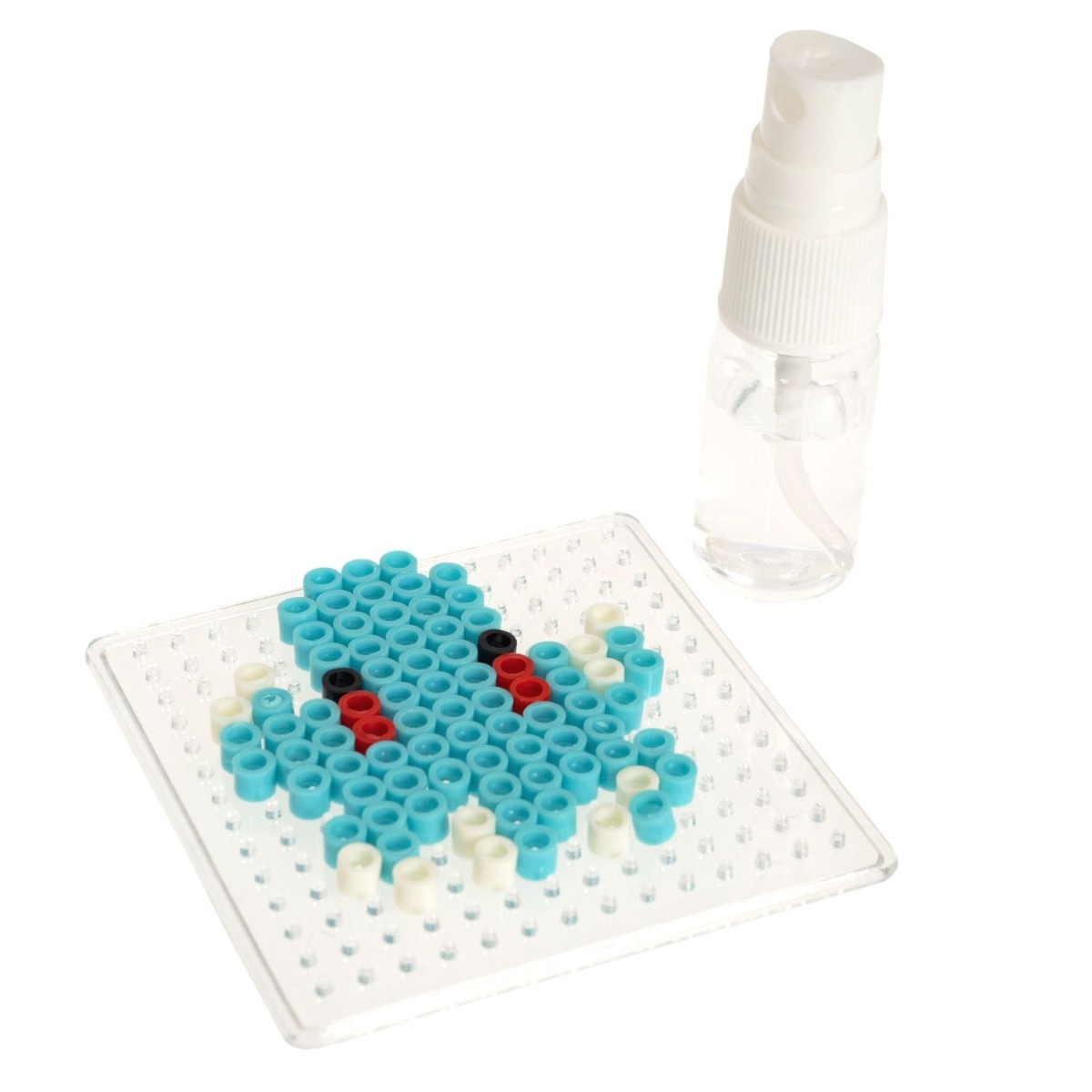 Разложите цветные бусинки по трафарету, слегка смочите их водой, дайте им высохнуть и готовая фигурка застынет!