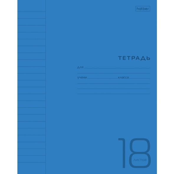 Тетрадь 18л линейка Однотонная. Синяя пласт обложка