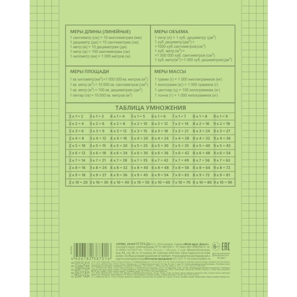Тетрадь 24л клетка Однотонная. Зеленая пласт обложка