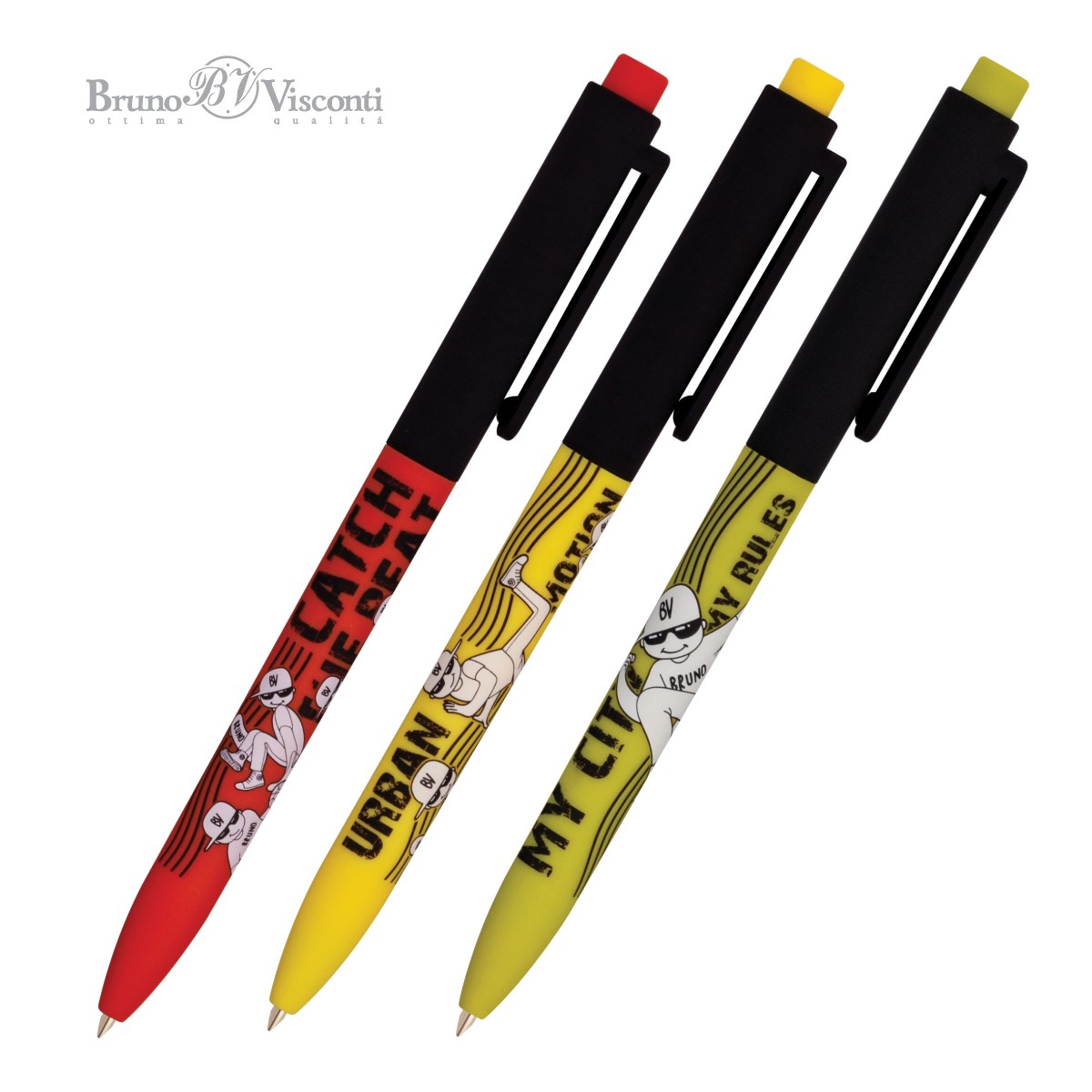 Ручка шариковая синяя BV FunClick Городской движ 0,7мм принт