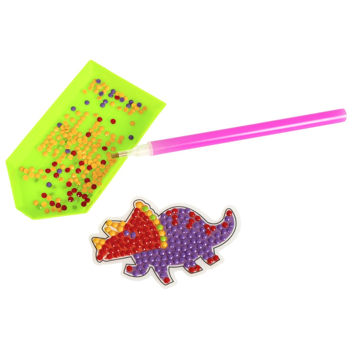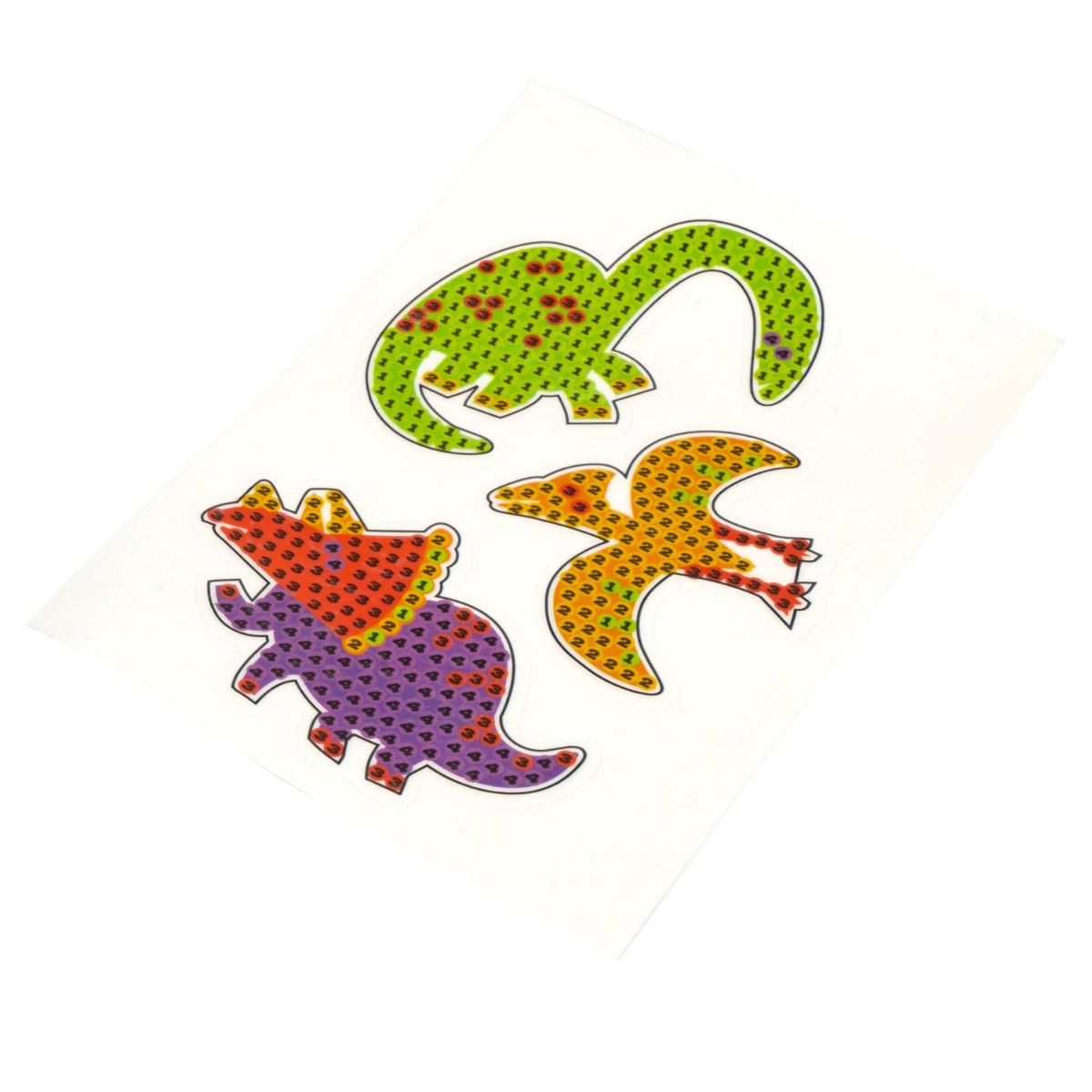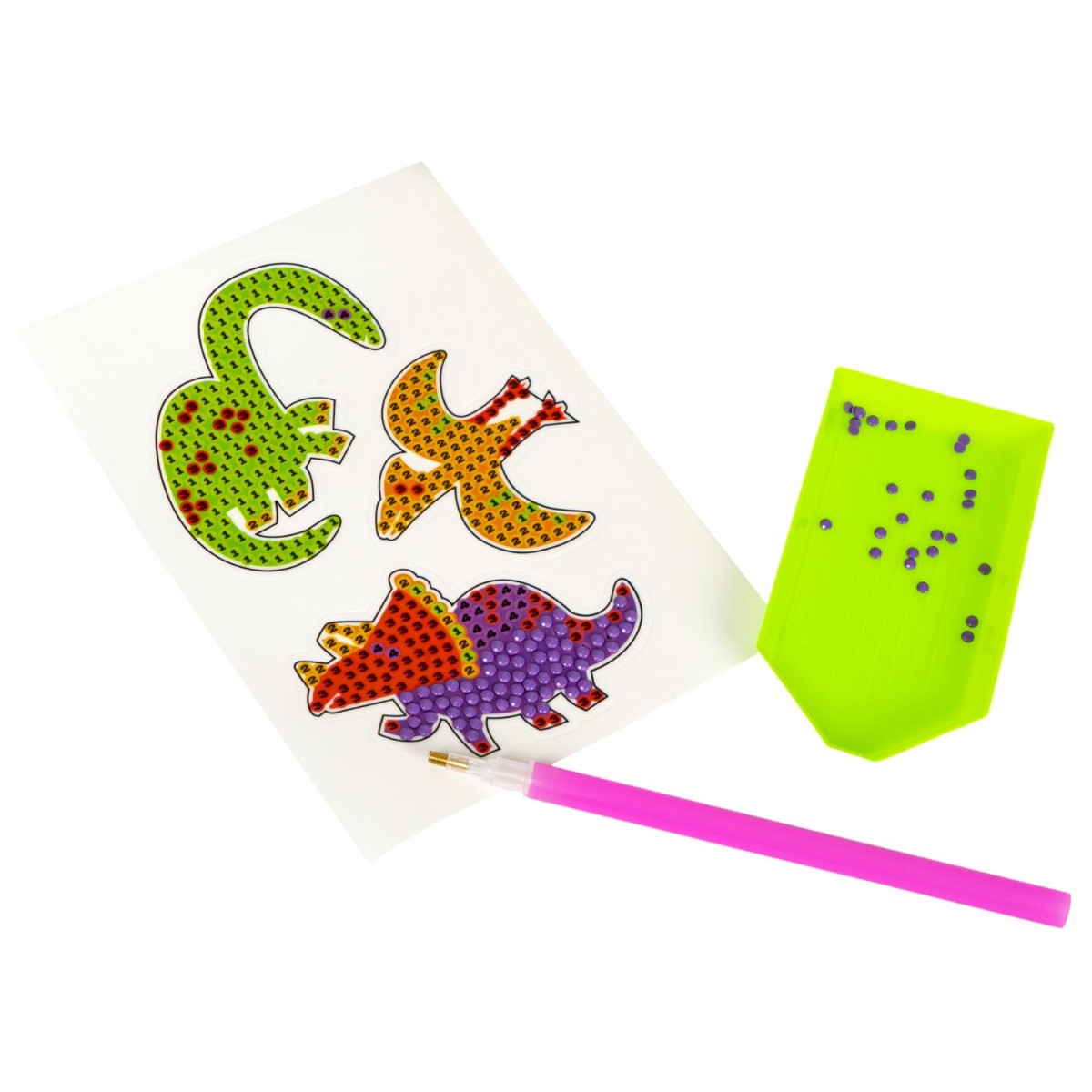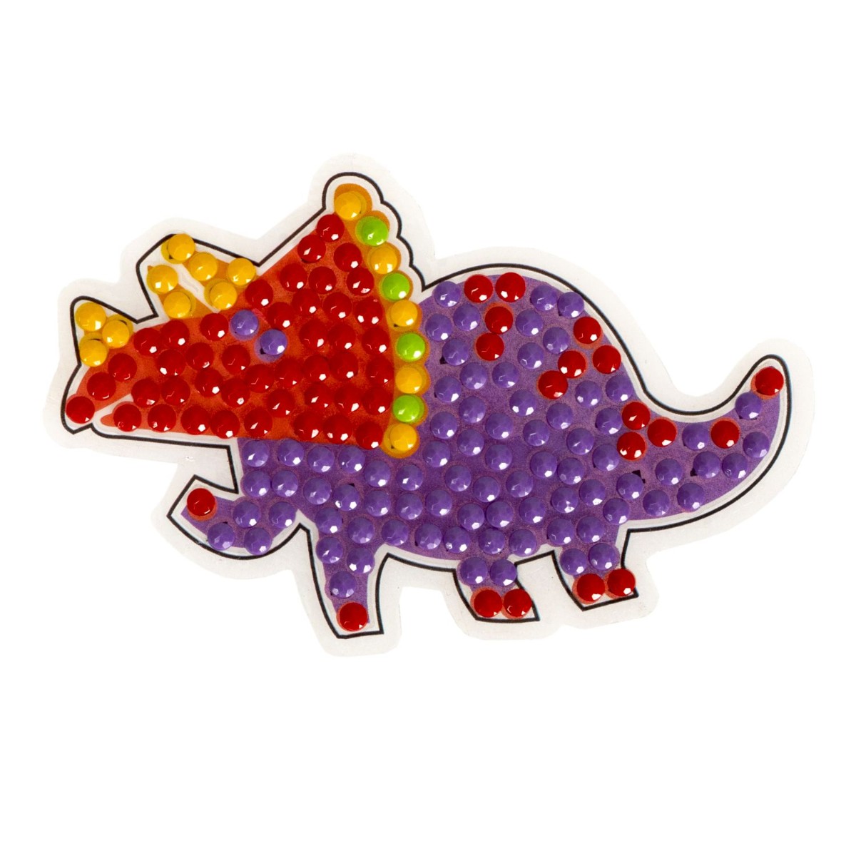 Переносите стразы на выбранный участок картины, используя аппликатор. У Вас получатся 3 крупных стикера с динозаврами. Собери свой комплект наклеек и укрась ими дневник, телефон, любимый блокнот и многое другое.