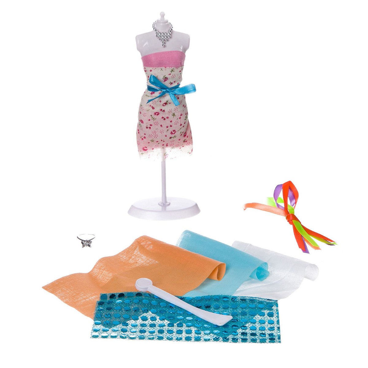 Все девочки обожают играть с куклами, одевать и переодевать их, рассматривать и коллекционировать кукольную одежду и аксессуары. А теперь есть потрясающая возможность самостоятельно делать платье для куклы, сделать его таким, каким хочется! Девочки смогут сшить наряды для любимой куклы также, как это делают настоящие дизайнеры-модельеры. В набор входят выкройки-лекала будущей одежды, манекен - для примерок, разнообразные ткани и украшения ленты, колье, пуговички, стразы, портновские иглы, наперсток и инструкция с основами швейного мастерства.