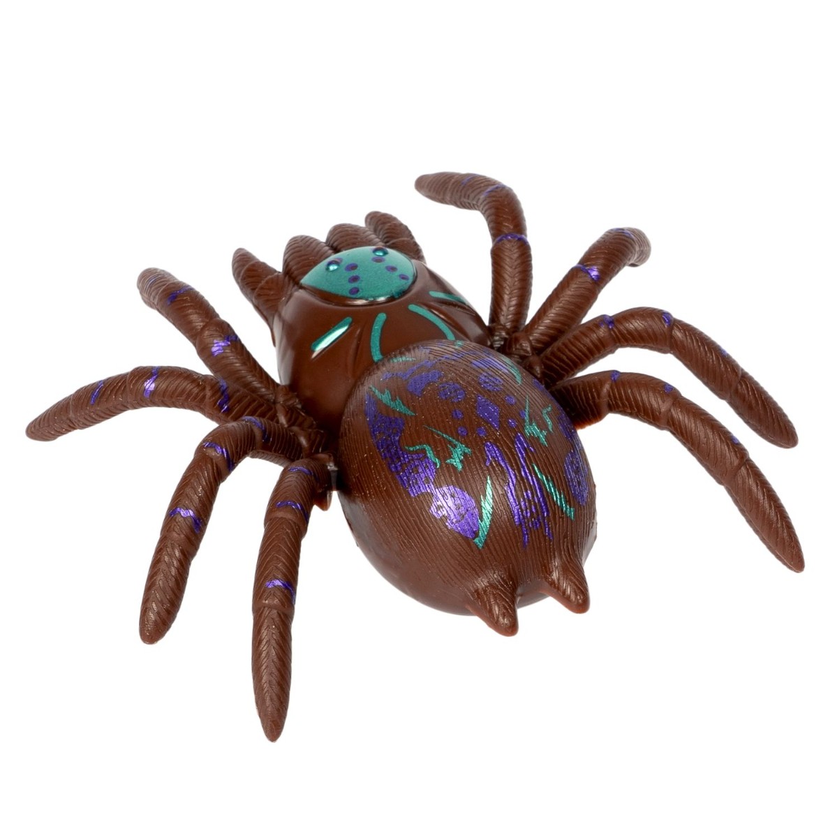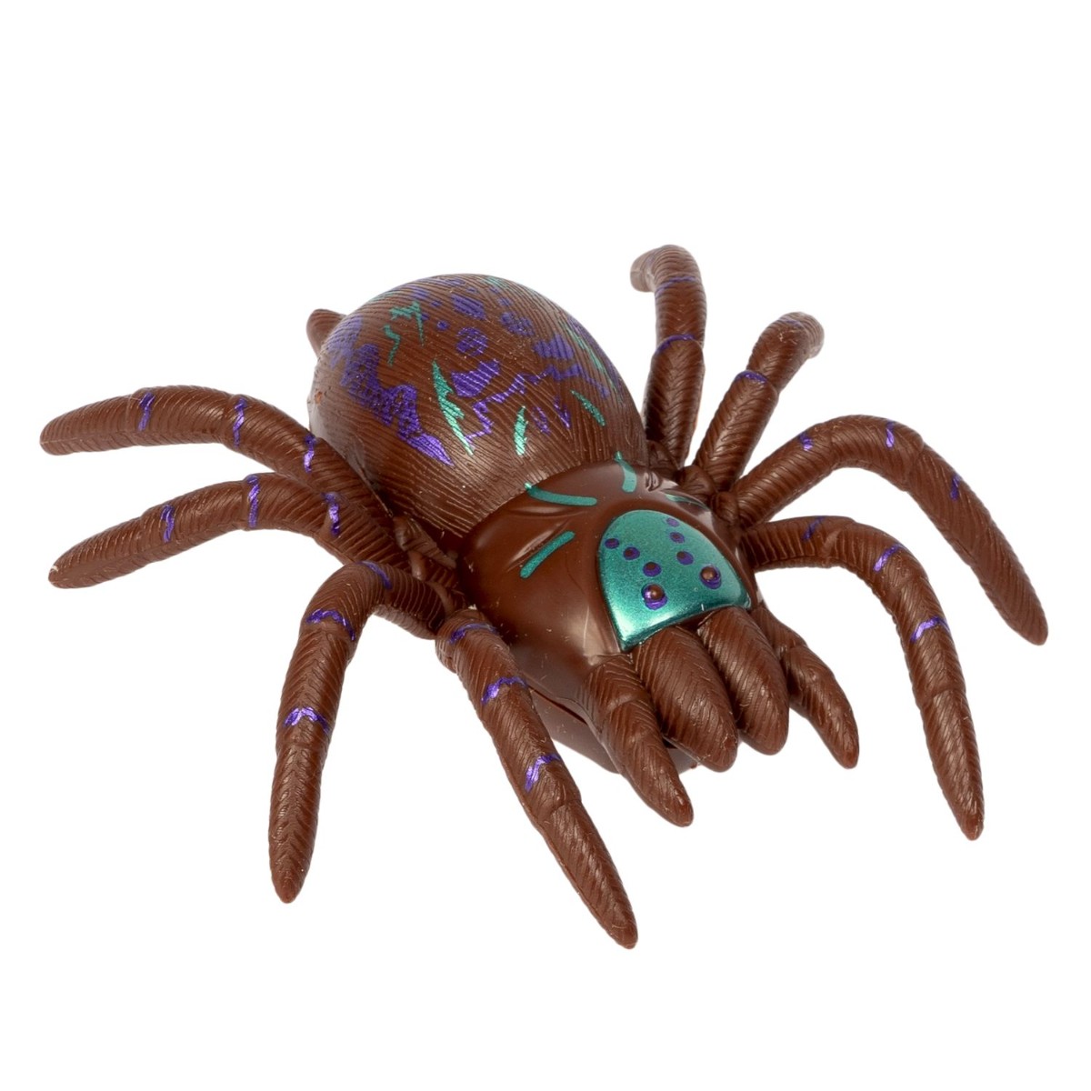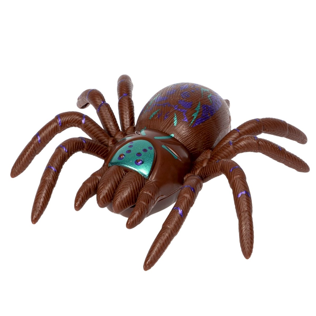 Спускается по вертикальной поверхности! В комплект входит: игрушка паук – 1 шт. Использование: поместите на стекло или любую другую гладкую вертикальную поверхность, наблюдайте как паук спускается вниз. Уход: если игрушка падает, промойте липкое колесико мыльной водой
