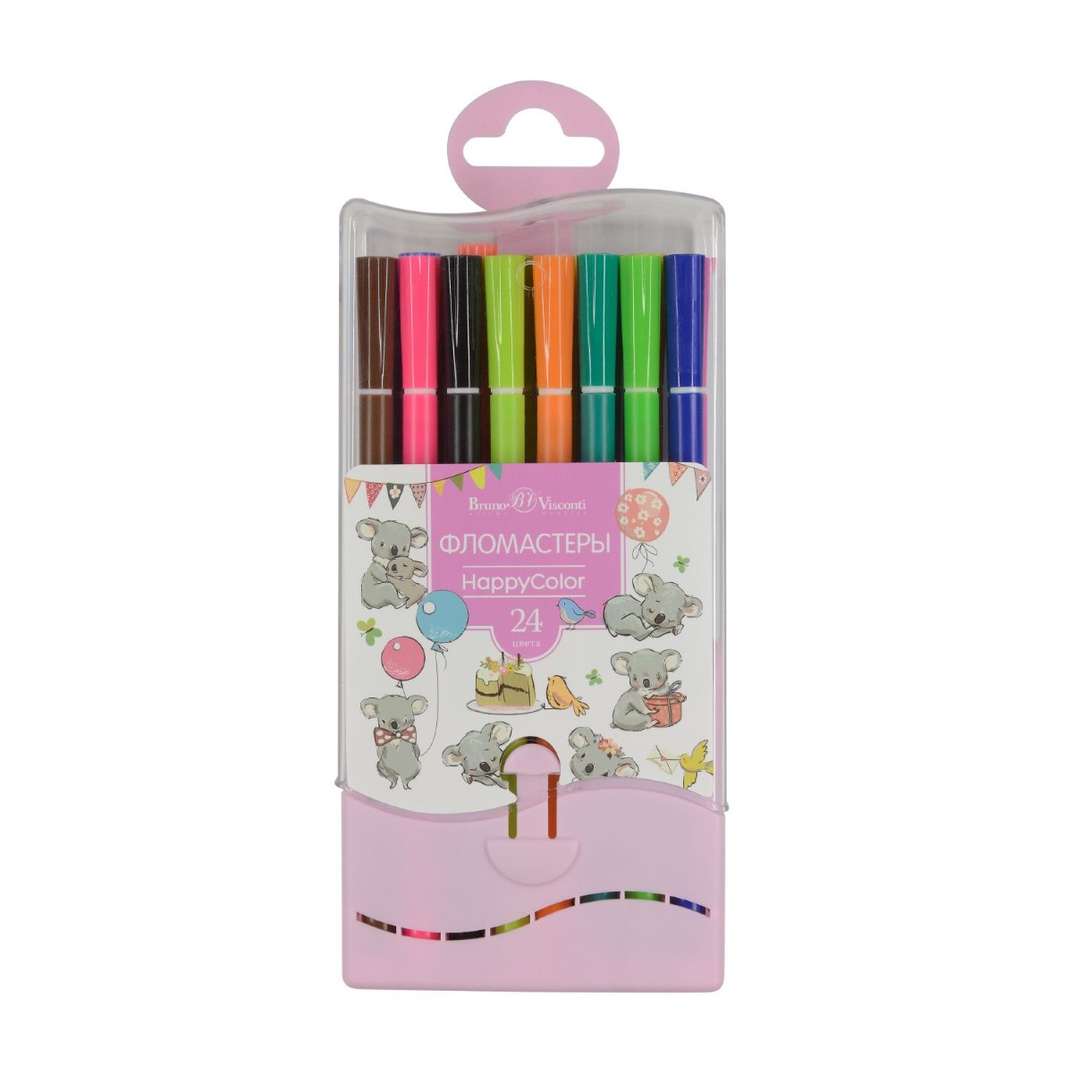 Фломастеры 24 цв BV HappyColor 2 вида в пластиковом пенале