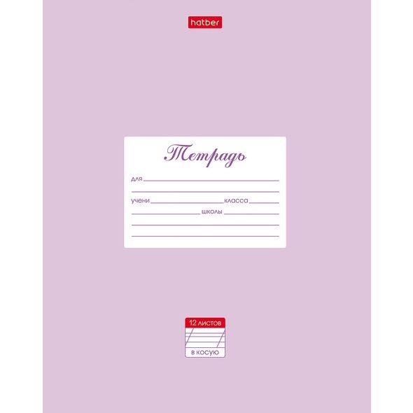 Тетрадь 12л линейка косая Однотонная. Пастель Сиреневая с доп. гориз линией